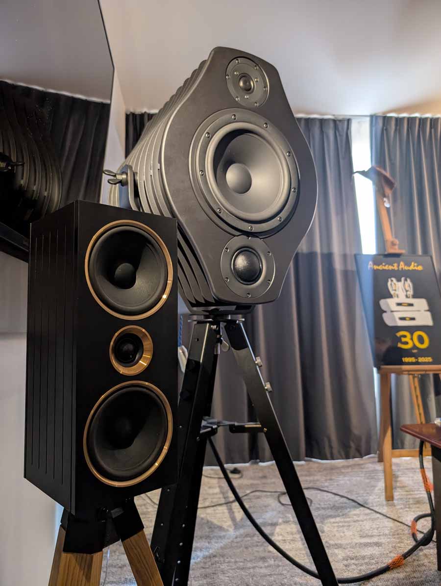 Ancient Audio are celebrating their 30th anniversary, and for this occasion they have released a new Lektor 30th Anniversary CD player. They also debuted a new speaker in this room, the Fram Arte Noir, a 3-way design with passive radiator to help with the low frequencies and an adjustable crossover so you can tune the sound to your preference. These were definitely not lacking body, with ample bass from this setup, and good clarity too.