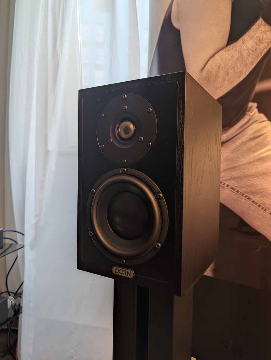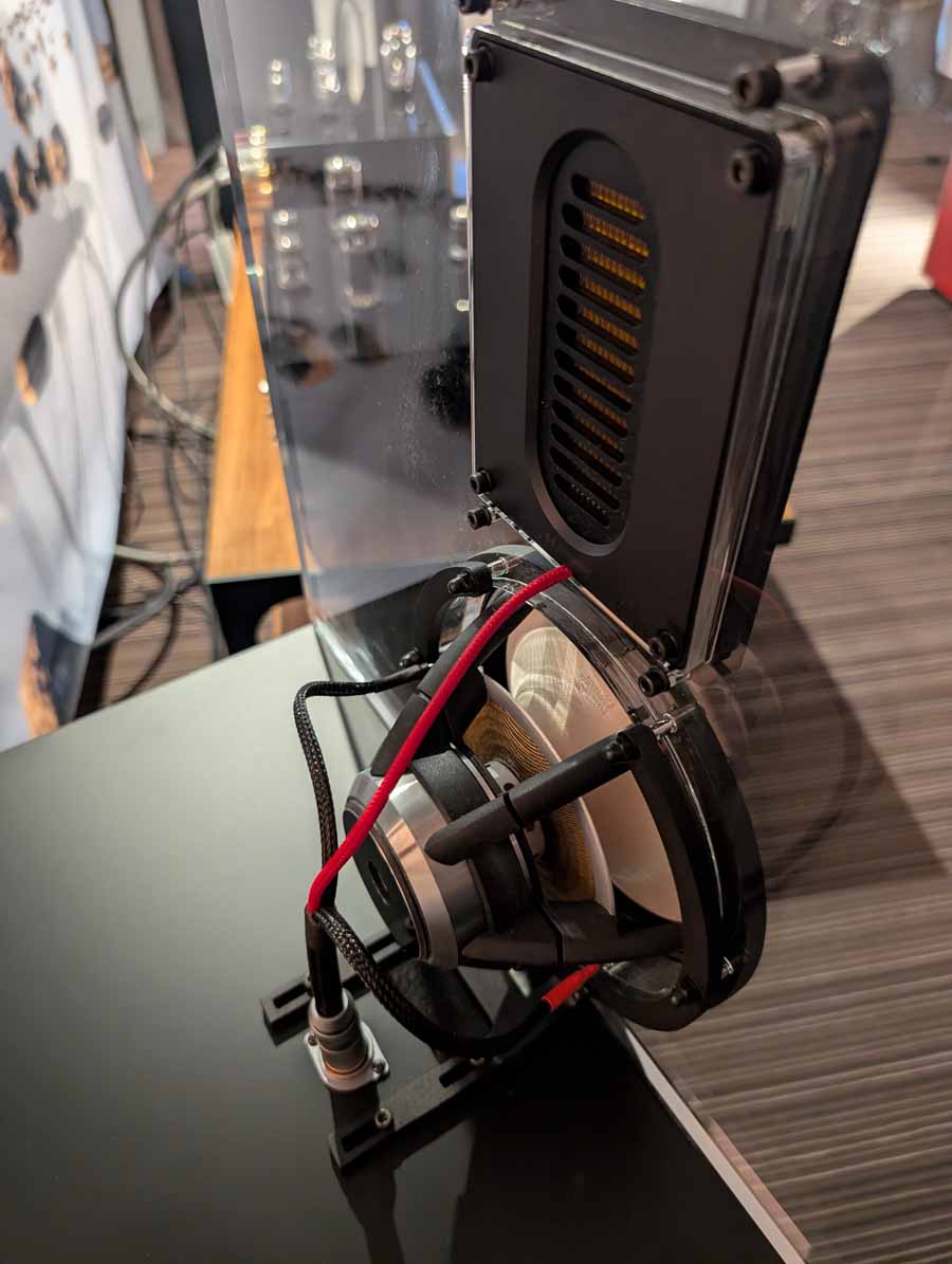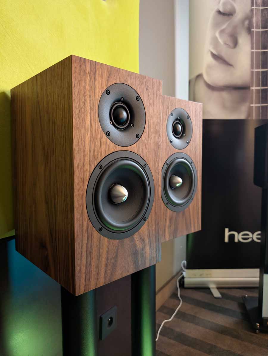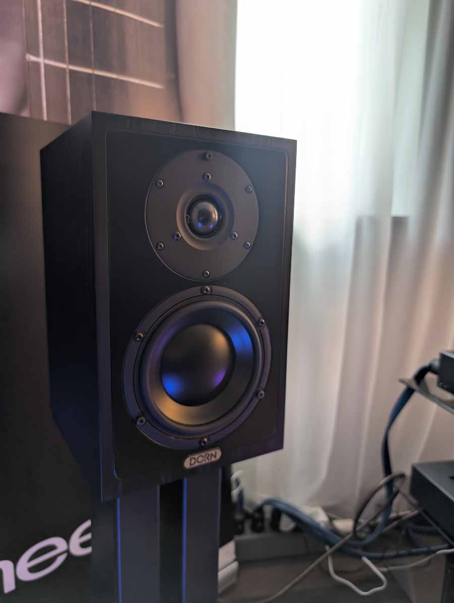Audiomagic distributes quite a few well-known brands, in this room they had a full HEED setup with the Obelisk Integrated, Lagrange S, Abacus S, and Volumio Rivo+ streamer, running into a pair of Dorn Acoustics (a sister brand of HEED) Herald speakers. They were playing Tool in this room, a great palate cleanser for me, and it was fantastic. These small speakers handle rock music very well, with great imaging, energy, and dynamics.