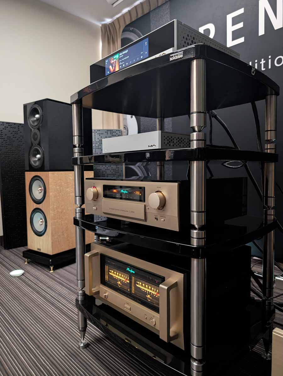 This room featured Penaudio’s Karelietta, one of their flagship models, using Seas diamond tweeters – these were paired with a Matrix Audio streamer and network switch, Accuphase electronics, along with Esprit cabling and SolidSteel stands. A great sounding setup, with plenty of energy and clarity.