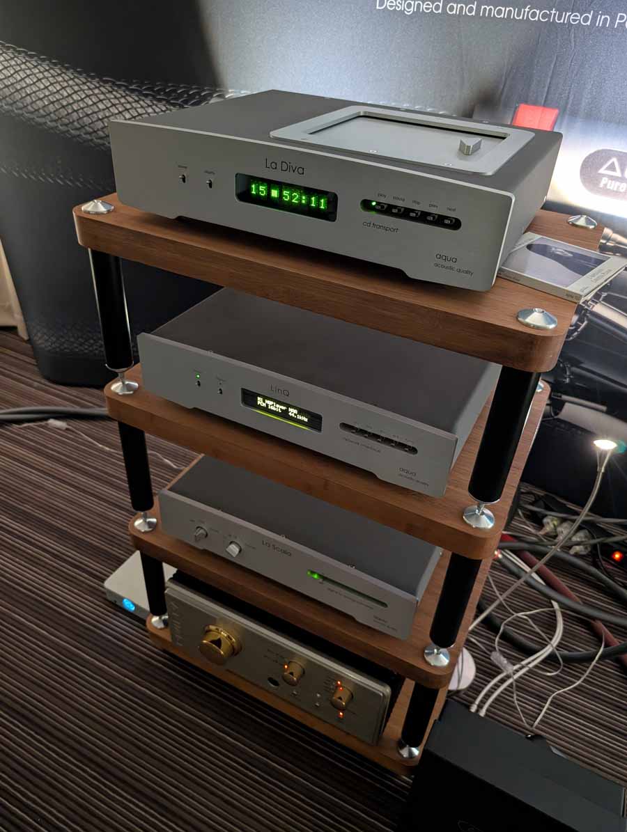 There were quite a few bits in this room, including the Cayin Soul 170 I, Jazz 100 and Jazz 80 amplifiers, MB audio cables including their new Silver interconnect, and Studio 16Hz who build speakers and service audio components.