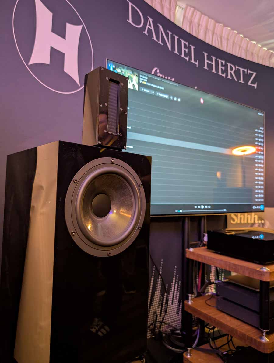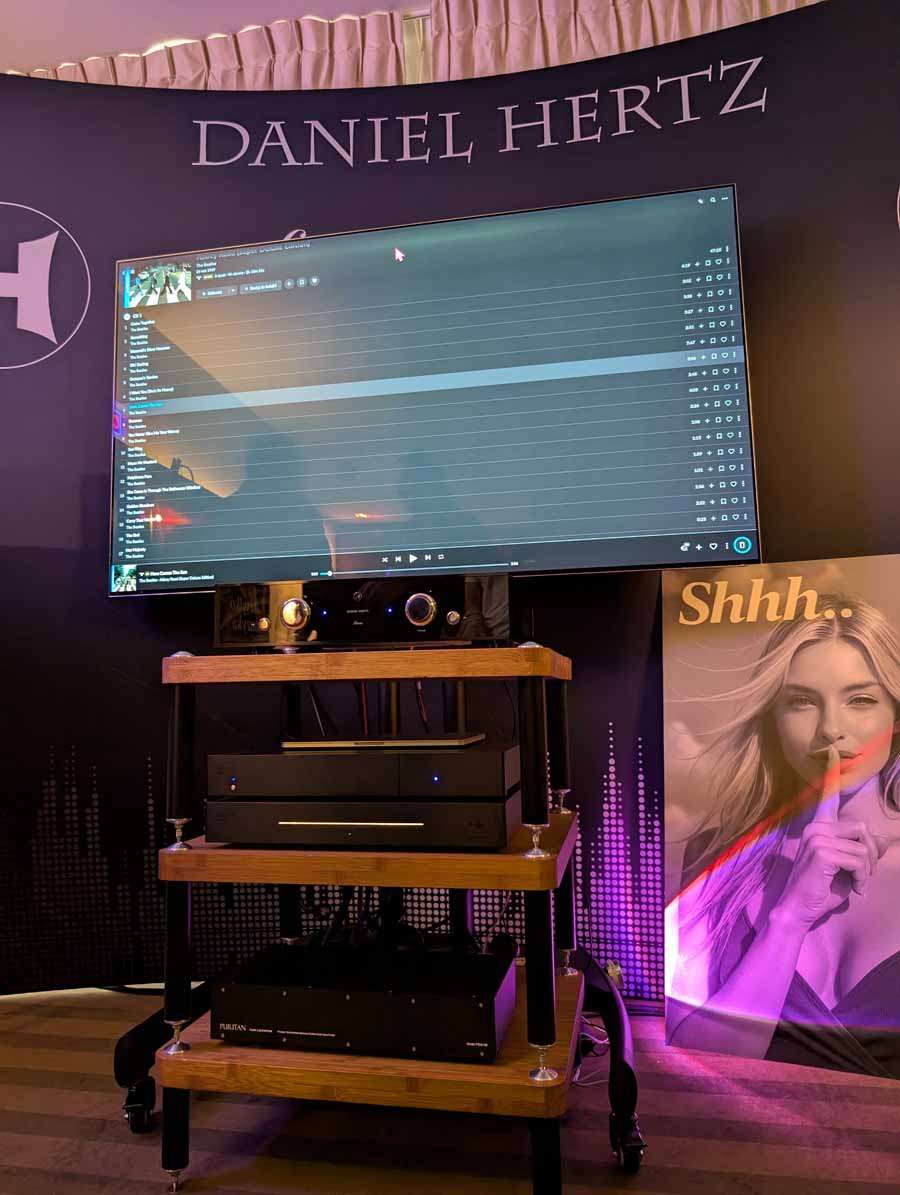This is a room with the latest project from Mark Levinson, we heard a setup last year, and it was quite special, so to hear it again was really something. I don’t quite fully understand all the ins and outs of the tech inside the amp, but it makes music sound real and feel alive. Daniel Hertz offer a range of amplifiers and speakers to fit most spaces, if you do get a chance to listen to this, jump at it.