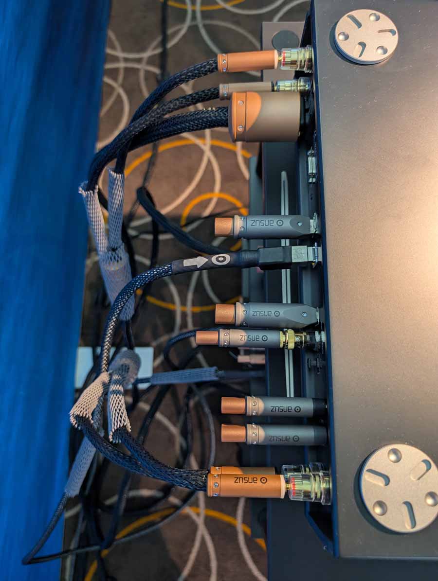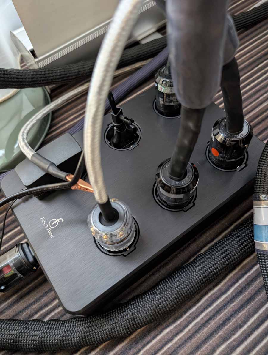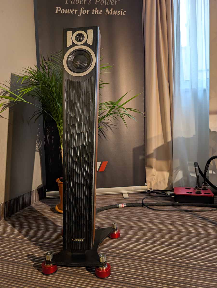 In the first Mytek room they had some thin Albedo speakers and the Mytek Brooklyn Bridge II and Amp powering them – these speakers sounded impressive for their size, they were using Faber’s cables and mains distribution in this room.