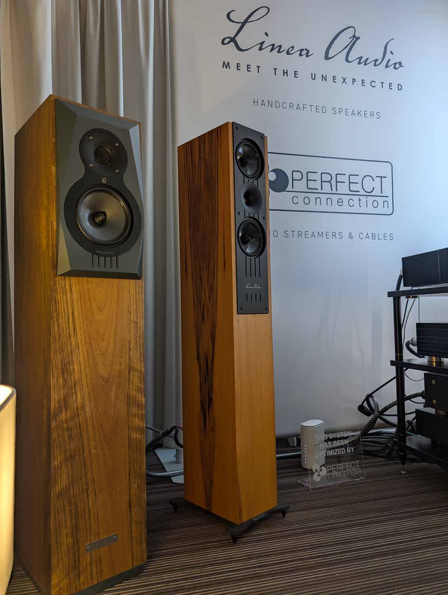 MuzgAUDIO unveiled two new DACs at the show, this is a company who make all their own designs and the whole system in this room was made up of components made in Poland. Linea Audio make a range of speakers, and the slim floor standers from Linea Audio were playing in here. They sounded excellent – quite a well-balanced sound with accurate tonality and controlled yet deep bass. Linea are making some great speakers, so I’ll be curious to see what comes next.