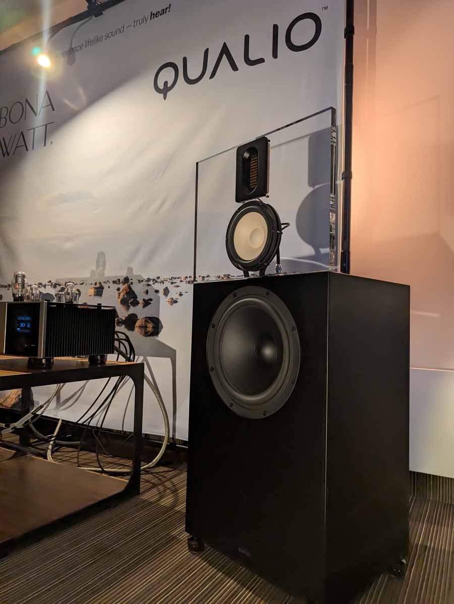 Another debut at the show was the Qualio IQ30 speakers, with a larger 12” woofer, these are sure to fill a bigger space with ease, yet they remain easy to drive. These new IQ30’s were paired with BonaWatt amplifiers and a Lampizator DAC – easily room filling sound with a great sense of both clarity, and fullness.