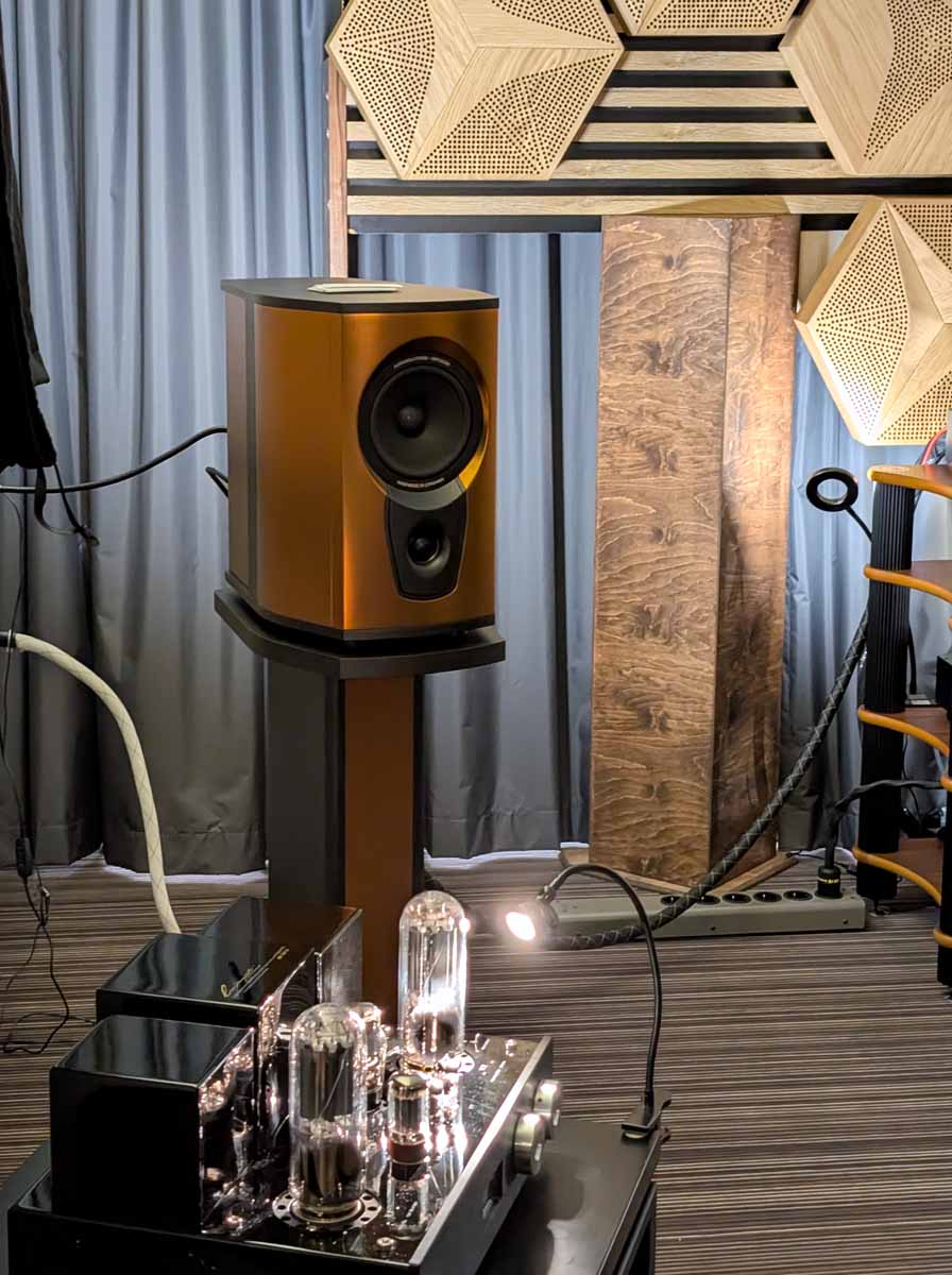 Cube had their new Monet speakers in this room; they were paired with a Tektron SET amplifier. An easy-going speaker, they were using IsoAcoustics feet and these speakers sounded nice and natural.