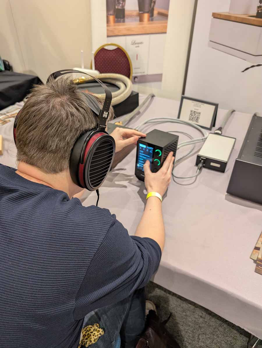 Lucarto had their flagship headphone amp here, the Songolo HPA300SE, paired with headphones from Dan Clark Audio, Meze, Audeze, HiFiMAN and more. They also had their HPA200 on demo too. I did have a quick listen to the HiFiMAN Susvara with the Lucarto HPA300SE – and it is a fantastic pairing, driving them effortlessly with tons of power, punch, and clarity.