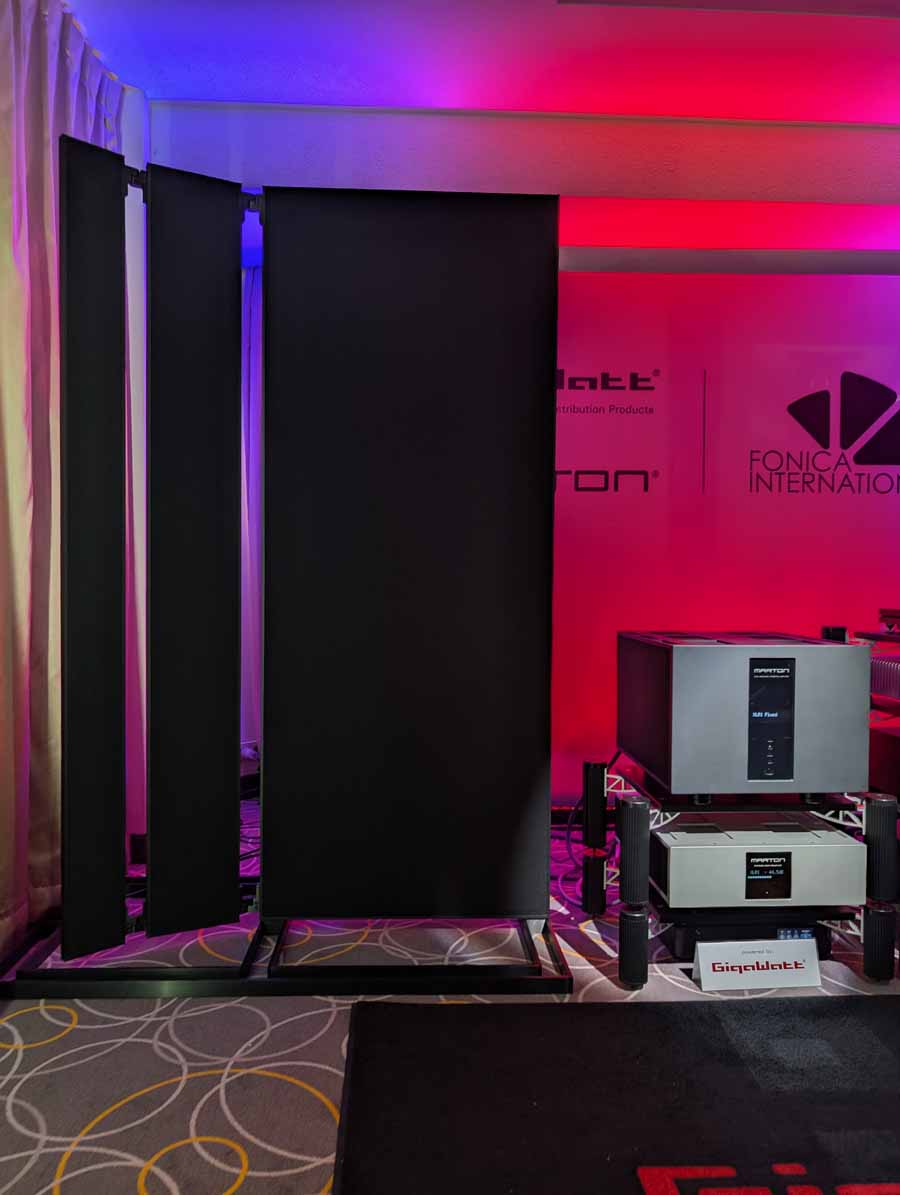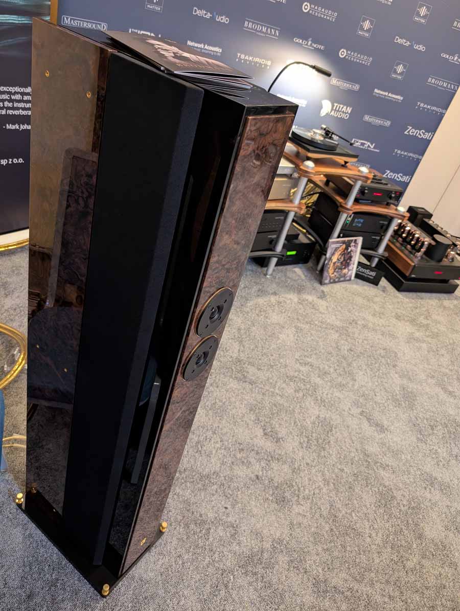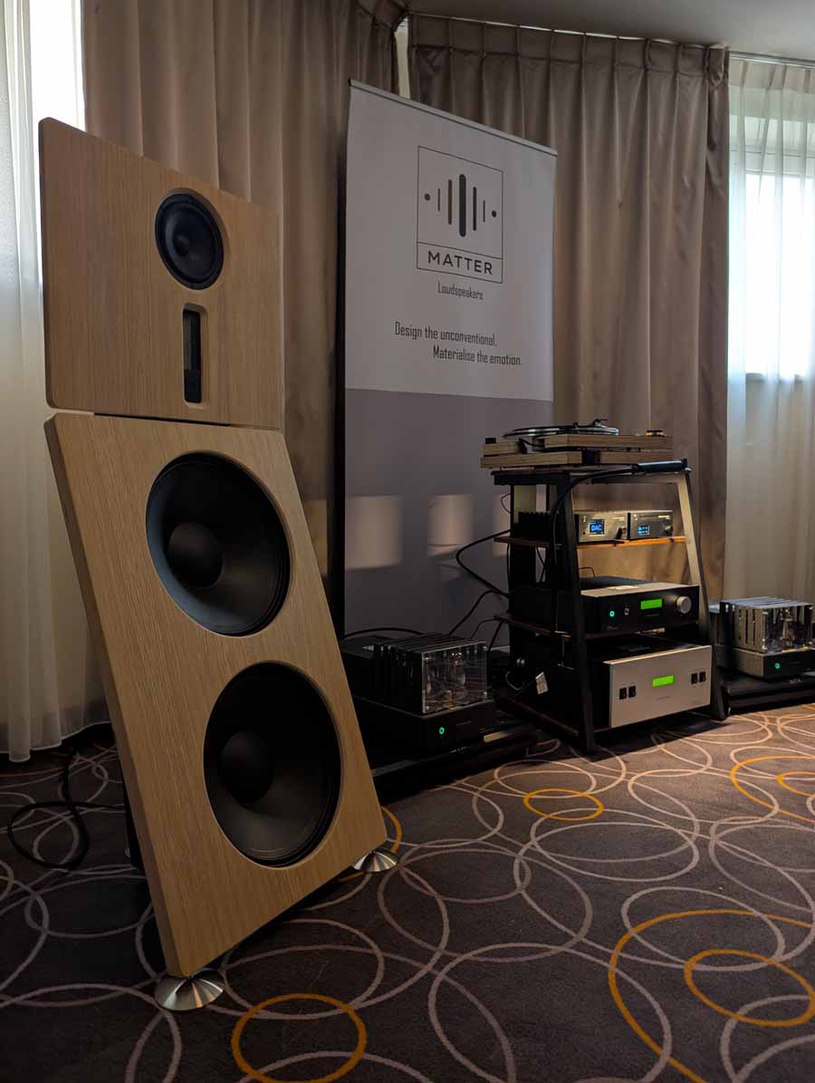 In this Delta Audio room we had a pair of Matter speakers, paired with a full complement of Tsakiridis electronics with the addition of a GoldNote DAC and CD player. These open baffle speakers had tons of punch with good vocal clarity too, an engaging system.