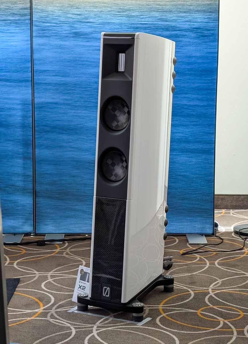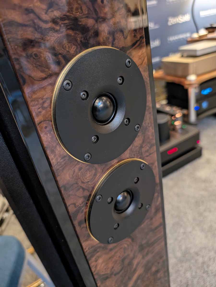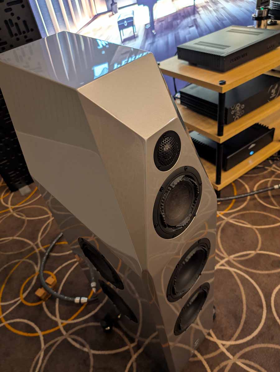 In this Delta Audio room we had a pair of Matter speakers, paired with a full complement of Tsakiridis electronics with the addition of a GoldNote DAC and CD player. These open baffle speakers had tons of punch with good vocal clarity too, an engaging system.