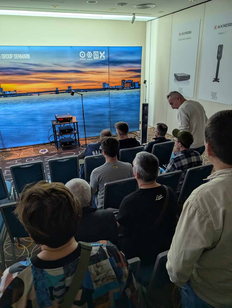 Audio Emotions had a couple of rooms with Audio Group Denmark systems, the first using the Axxess Forte 3 all-in-one streaming amplifier, and Borresen X2 speakers. They were using Ansuz cabling and accessories throughout the system. As you’d expect, this was a very well dialled in room, and the Borresen X2 sounded superb when paired with the Forte 3 streaming amplifier. They have that signature control, and snappy transient response paired with explosive dynamics, great stuff!