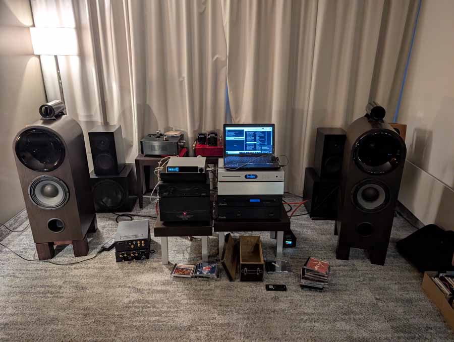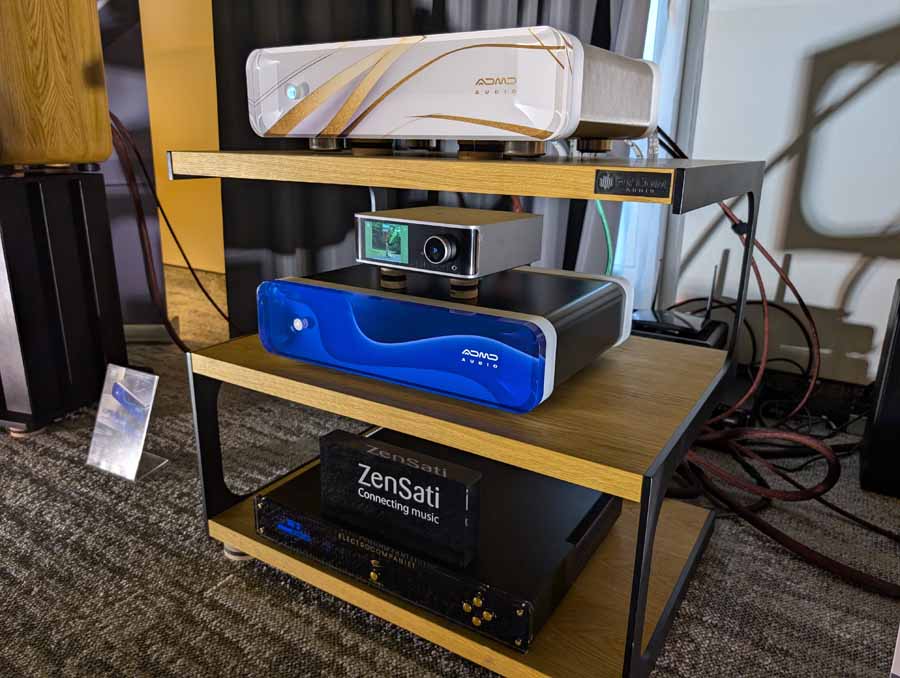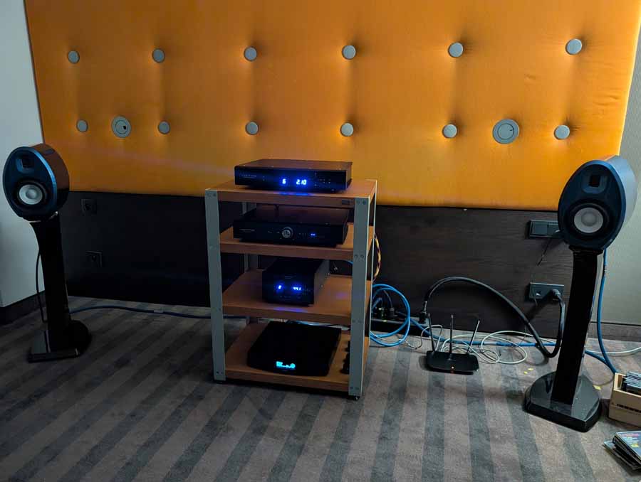 In Room 401 Audio Atelier had the new Bladelius ODEN II amplifier paired with TAD speakers (both the CE-1TX and E2 were on demo). Source wise they had a Lumin U2X network transport and Mola Mola Tambaqui DAC. I’m a fan of the TAD speakers and they worked well with the Bladelius here, with great control, scale, and detail.