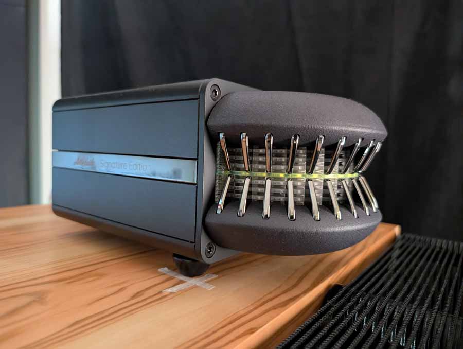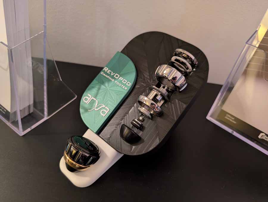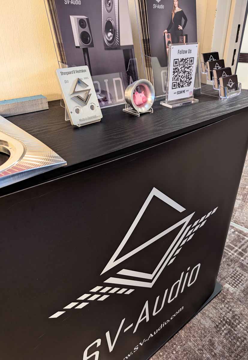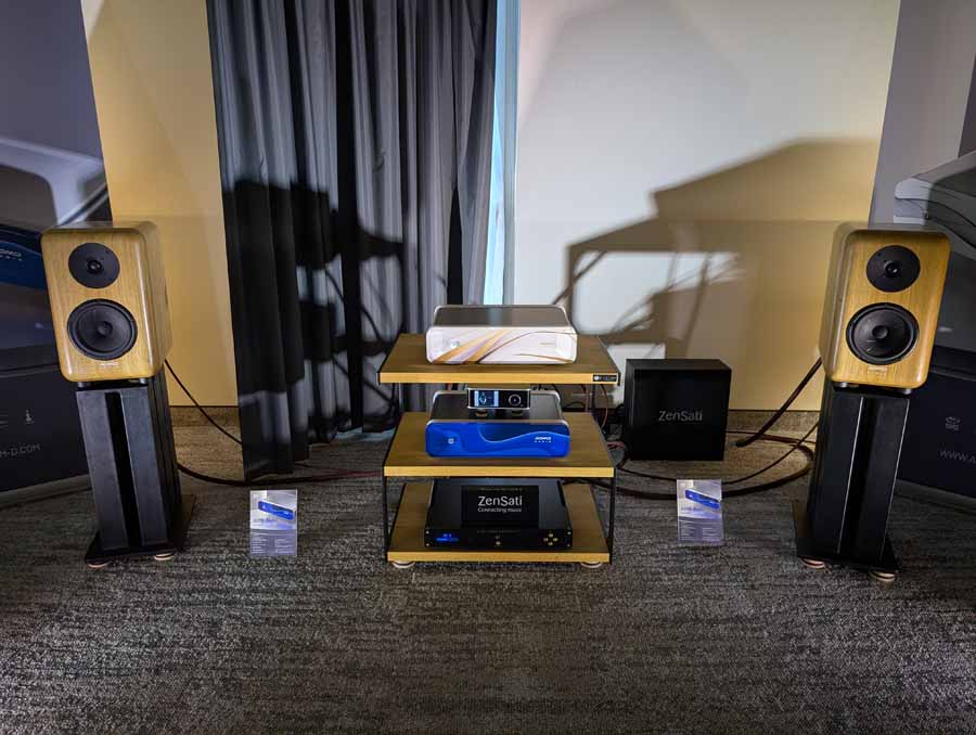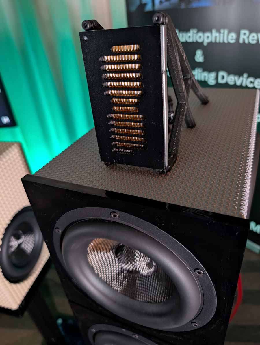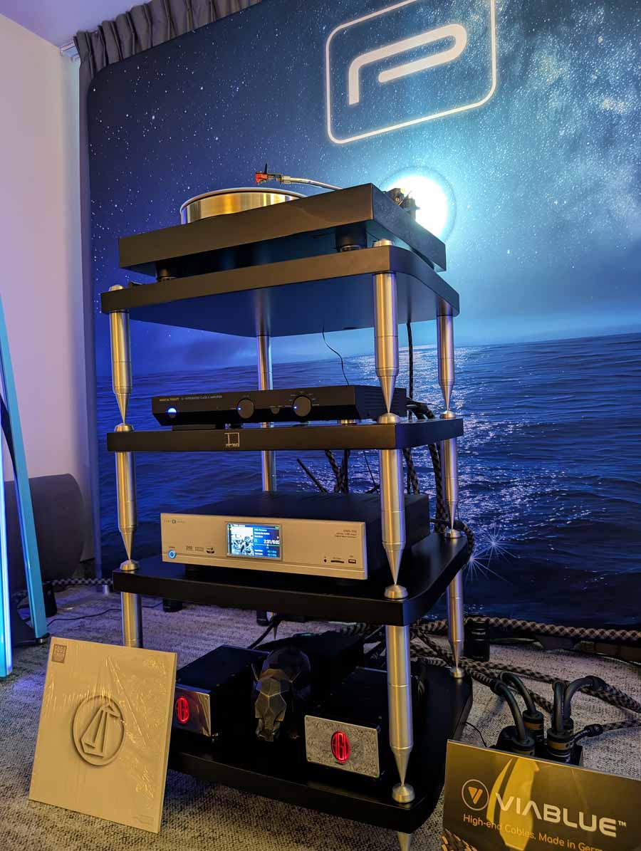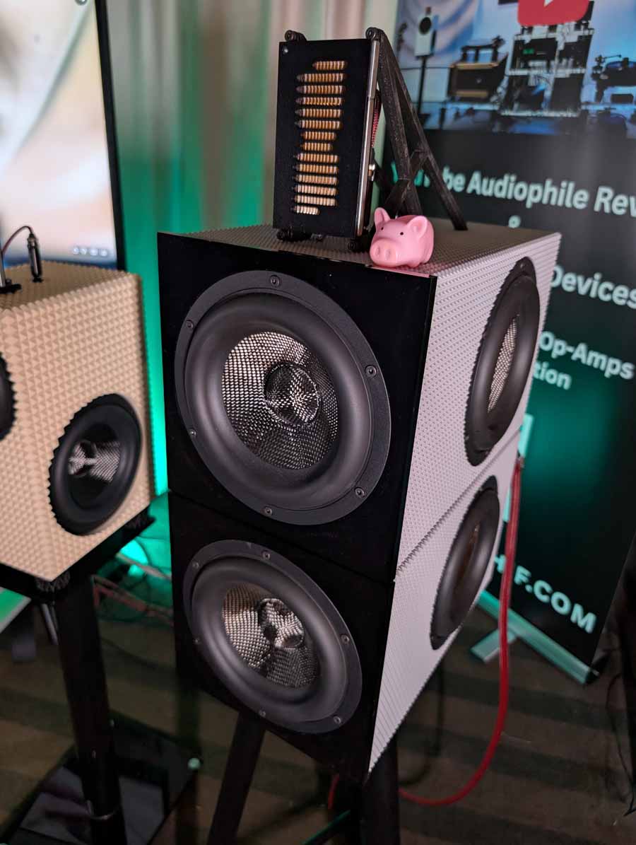 This company make a range of audio tweaks, including op-amps, isolation feet, cables, and speakers made with 3D printed parts – a nerds dream. They showcased two new models, the Mini Monitor Viper and Monitor Cobra. These are really cool looking speakers, we heard the Monitor Cobra and they sound great – big, deep bass, crisp highs and just a fun sound. The 3D printed feet look great too, and they have some on a pair of SolidSteel stands. These speakers put a smile on my face, it may have helped that they were playing some pretty heavy techno music.