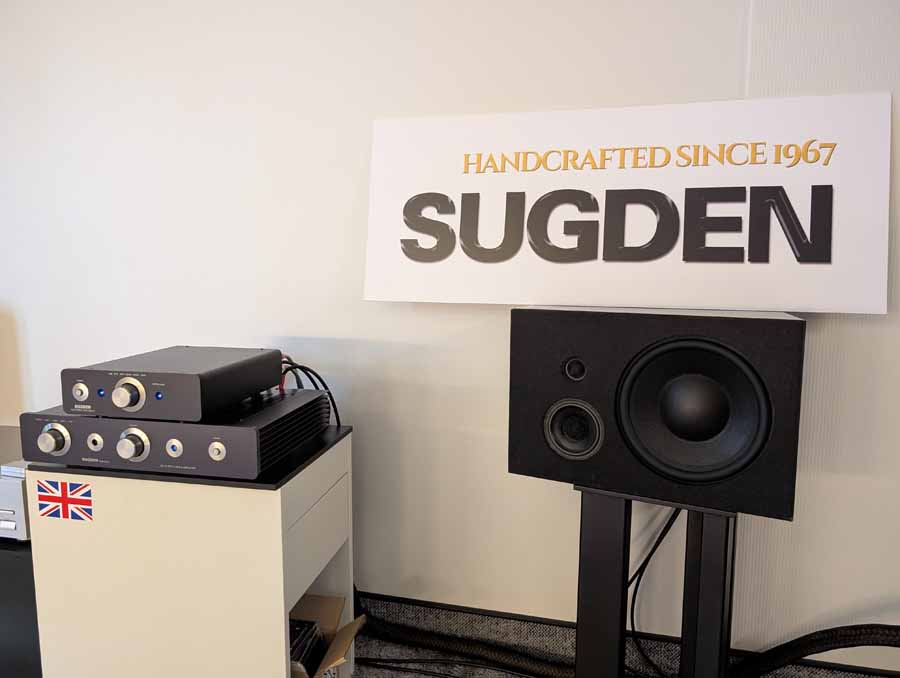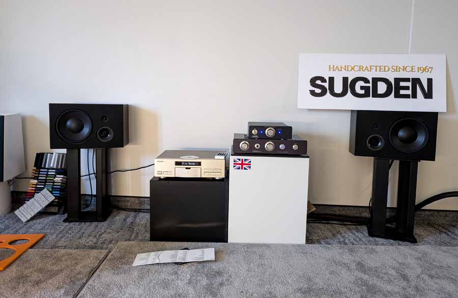 In this room we had the Sugden A21aL Class-A amplifier paired with the Sugden DAC-4 and Type-A mini loudspeakers. There was also a second, higher-tier system, featuring the Sugden MPA monoblocks with Grand Type-A speakers – this is the one that was playing when we went in the room, they were playing a live recording of Chopin (on SACD) and it was incredibly lifelike through this setup. I was also pleasantly surprised to see a Pioneer PD-T05 stable platter transport. This system had brilliant range and they changed through a few pieces of music in here proving that the system can handle dynamic shifts with ease.