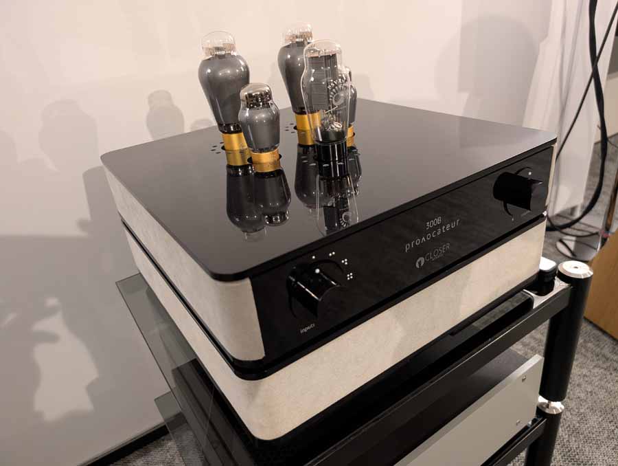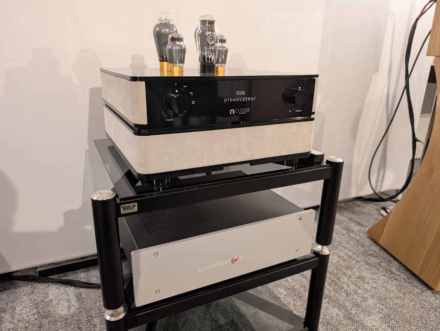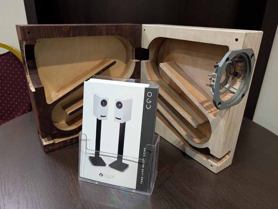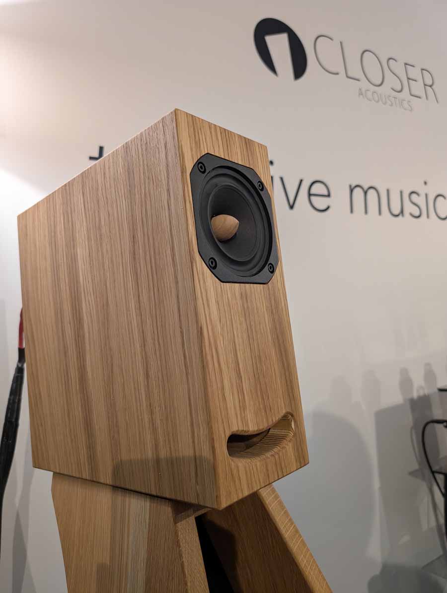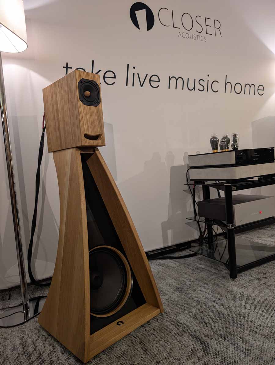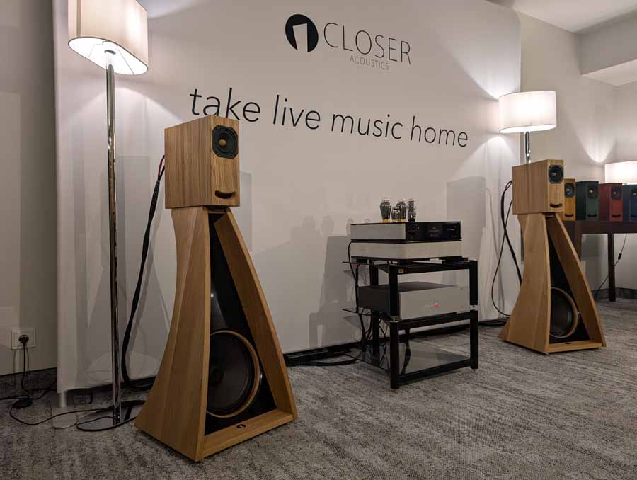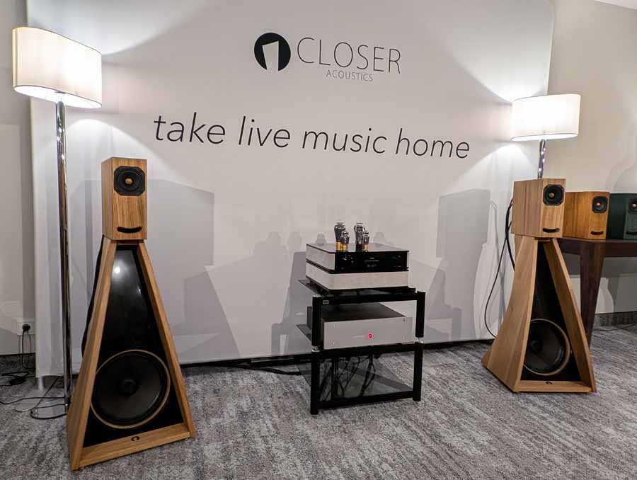 Closer Acoustics are a Polish high-end brand; they had their full OGY system powered by their signature 300B amplifier and paired with a Lampizator Amber 5 DAC. An interesting setup, I really enjoyed these smaller transmission line speakers on the open-baffle bass stands. Very controlled sound with great depth, the bass was perfect in this room, only coming out when called for. Very effortless.