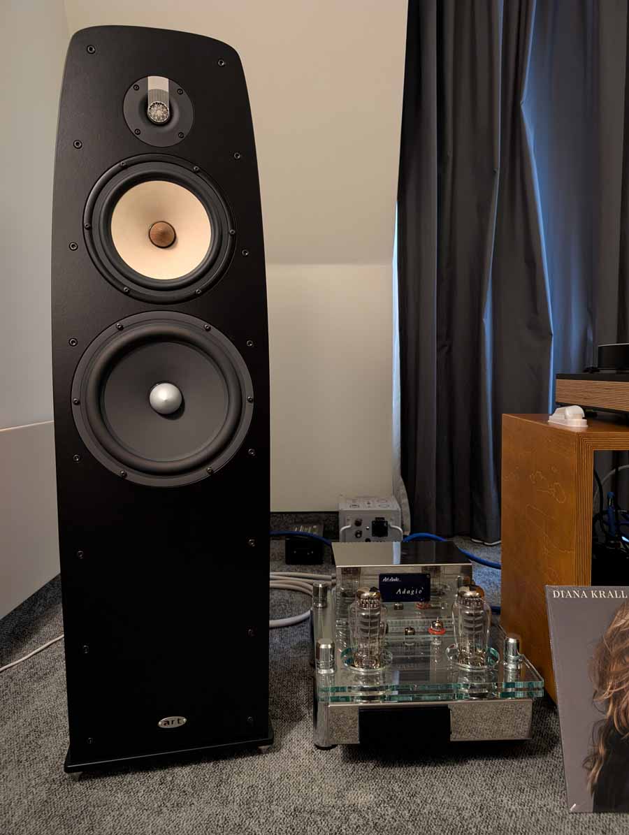 Polish distributor for ART speakers from Scotland. The demo system had the Impression Diamond 10 playing with amplification from ART Audio (Adagio monoblocks), along with power kit and cabling from Audioplan. They were using a Linn Systemdek and Audio Research CD player for the sources. I’ve heard ART speakers a few times, and they sounded great in this room paired with these electronics, the valves certainly smooth out the diamond tweeters.