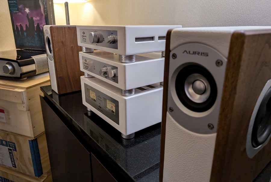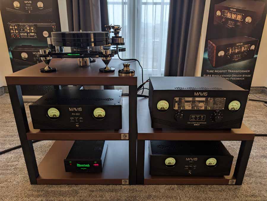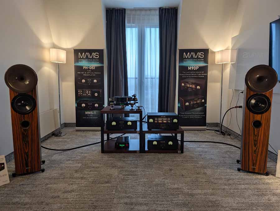 In the second Audio Anatomy room you had a pair of hORNS Aria III MK3 speakers playing, paired with a Mavis M90-P amplifier, MMS-1 streaming DAC and PH-DS1 phono stage that also features a DS optical cartridge input. The soundstaging here was phenomenal, with sounds emanating around the room, with huge depth, width, and height.