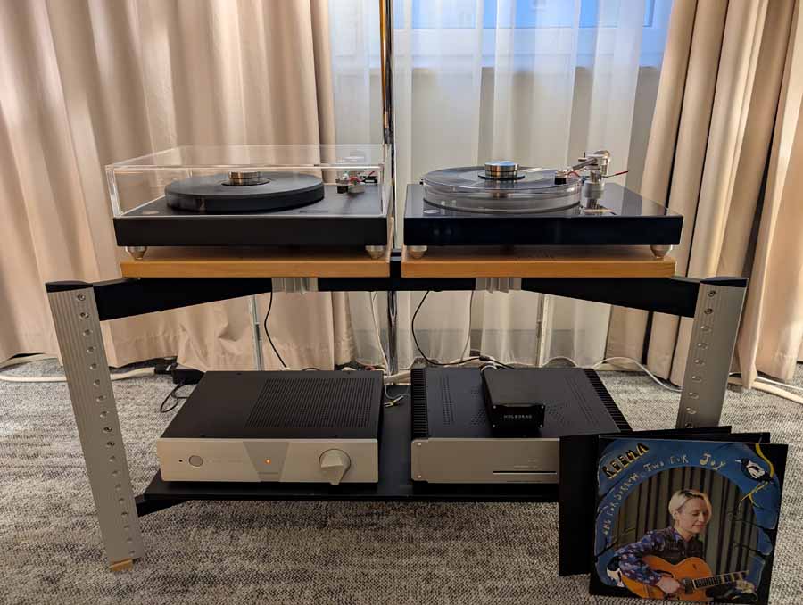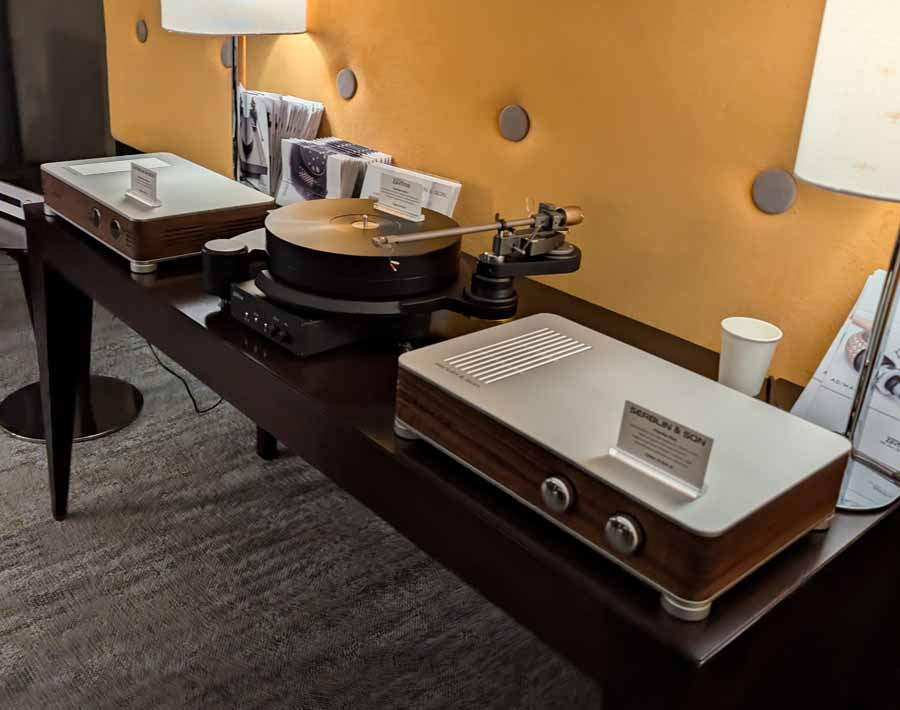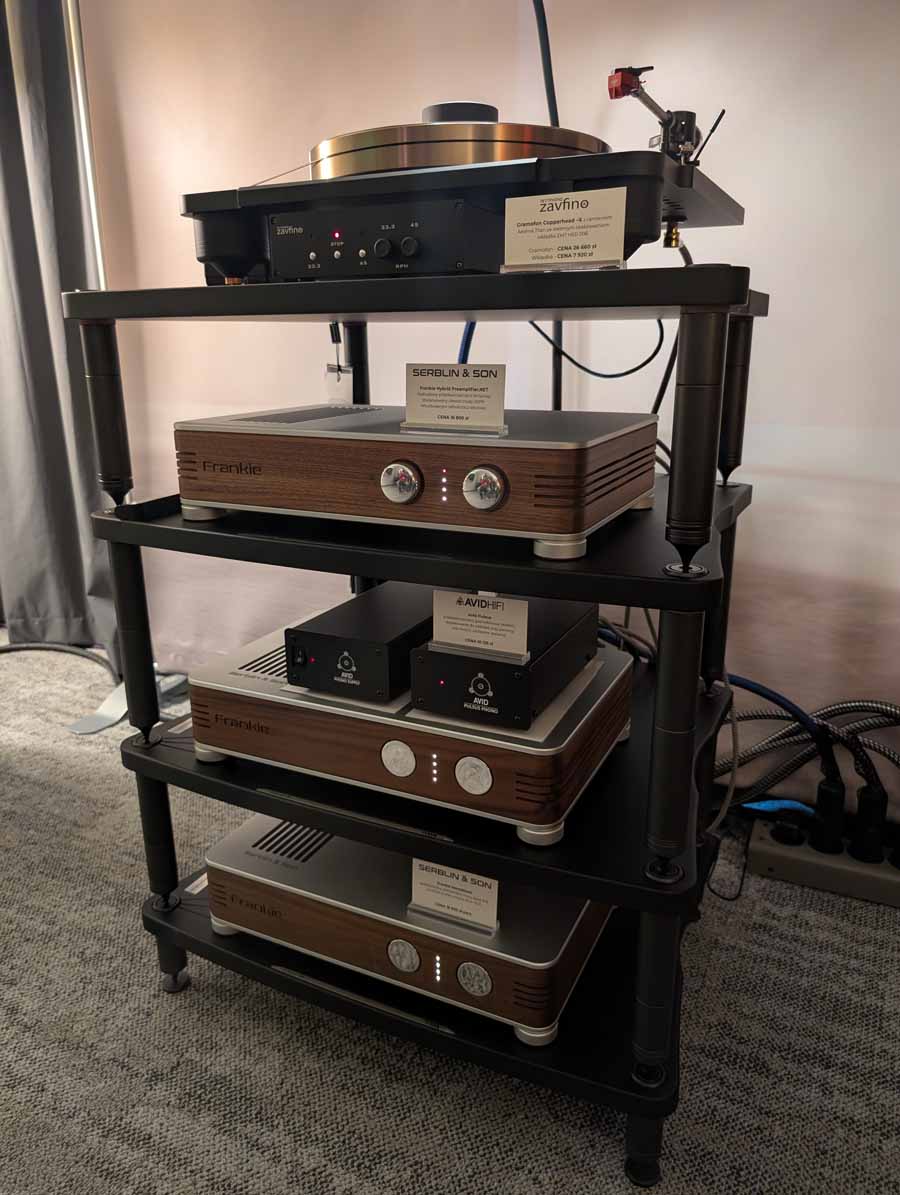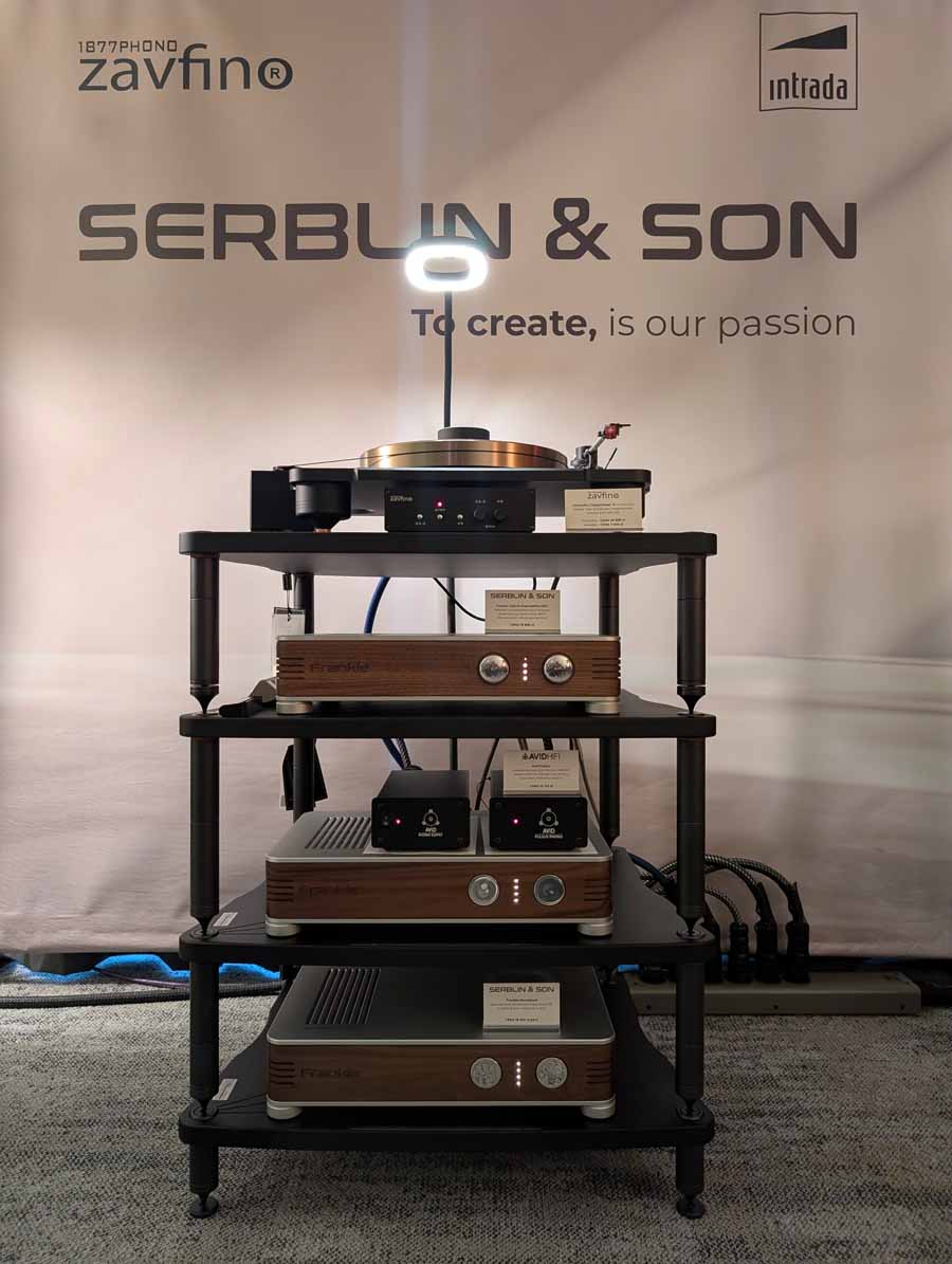 In here we had the Serblin & Son Frankie Hybrid pre-amp and Frankie monoblocks, running off a Zavfino Copperhead turntable with Aeshna Titan tonearm and EMT HSD006 cartridge. They were using a pair of Intrada Nadia speakers with Zavfino cabling. This was another well setup system, no bloat, clean, and crisp sound that had good space, and insight.