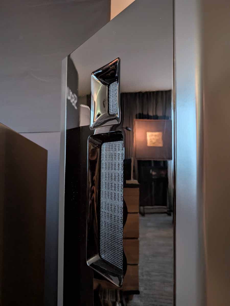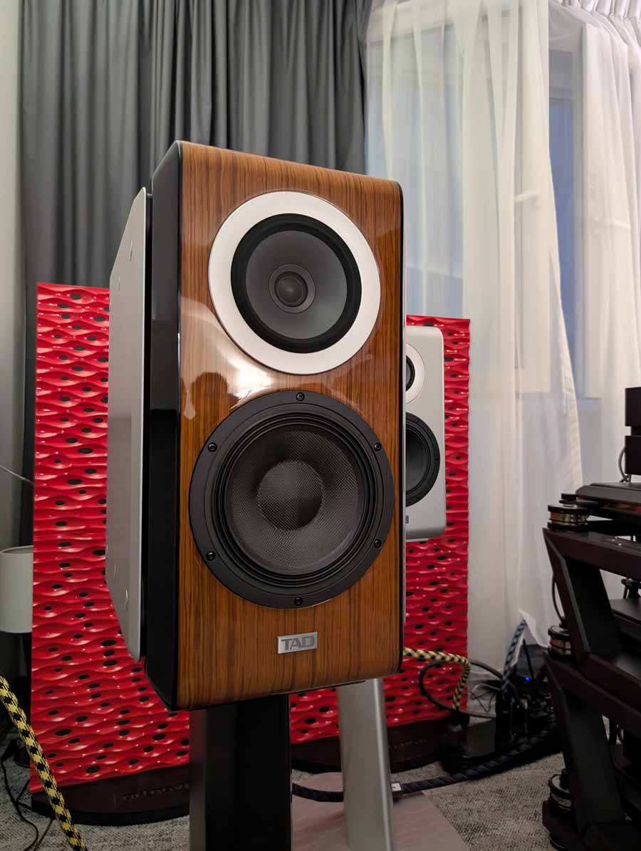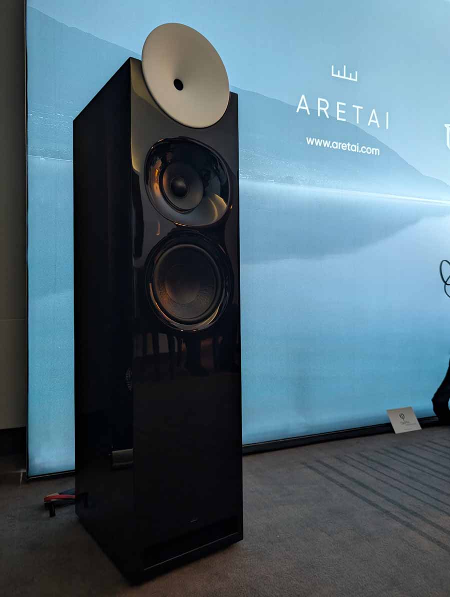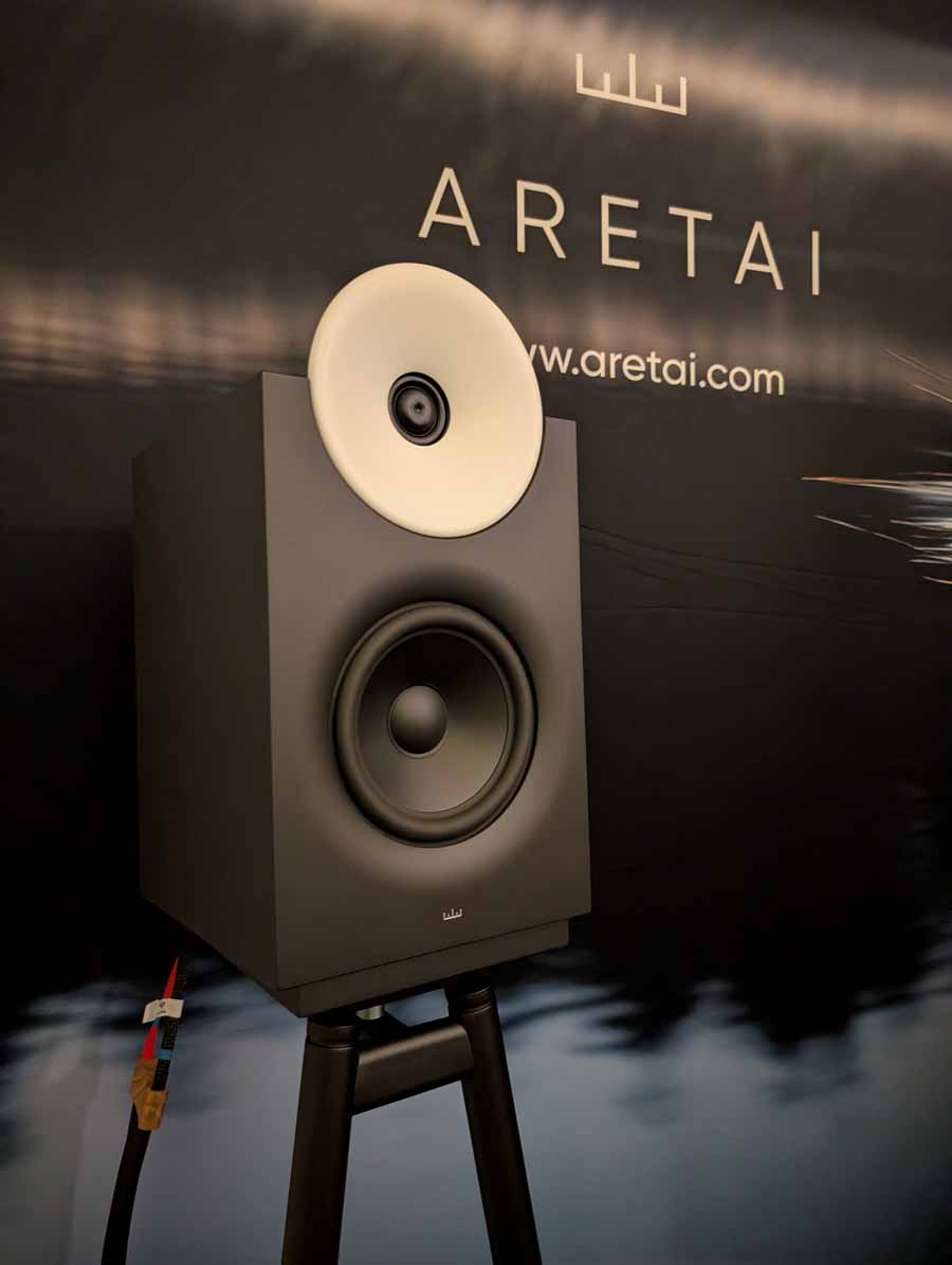In the second room they had a smaller setup, with stand mount Aretai speakers that have a secondary driver on the rear of the speaker, enabling them to go down to 30Hz. We had a short demo session with these, and they sounded a lot more even handed than their bigger siblings.