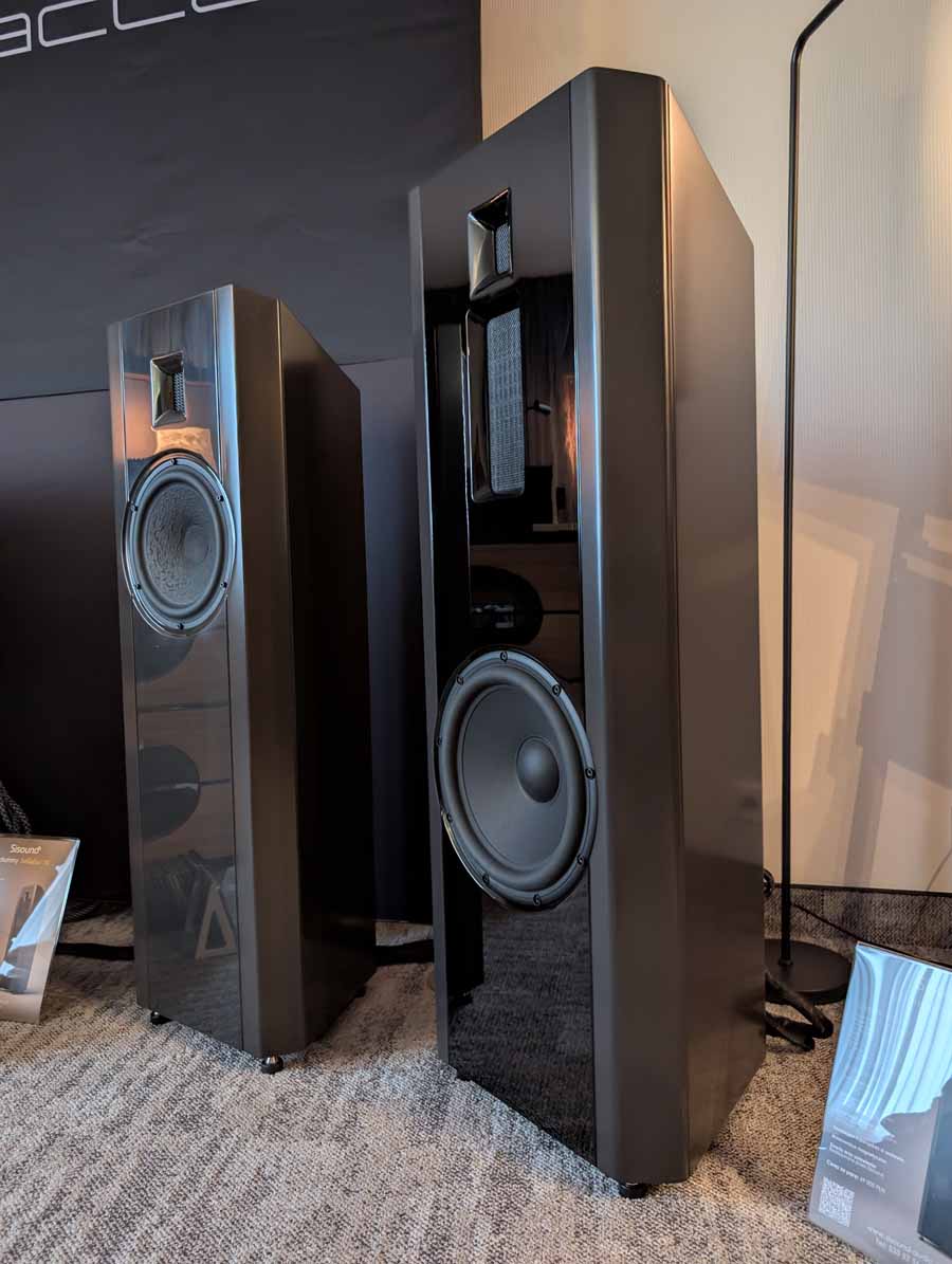 Dutch & Dutch are well known for their active speakers, at this show they premiered their brand new 6c speakers. This is a slightly smaller model from the brand, but with the same DNA, offering the same level of quality in a smaller footprint. They still have the same streaming and RoomMatching tech as their bigger siblings, and they form the basis of an upcoming floor standing system. These are still a very Dutch & Dutch speaker, with very similar voicing to their bigger sibling, yet with a tiny bit less heft to the sound. For a compact active speaker, they sure do dig deep into the bass with great impact and control. Active speakers are becoming increasingly more popular, and when they sound this good, it’s no mystery as to why.