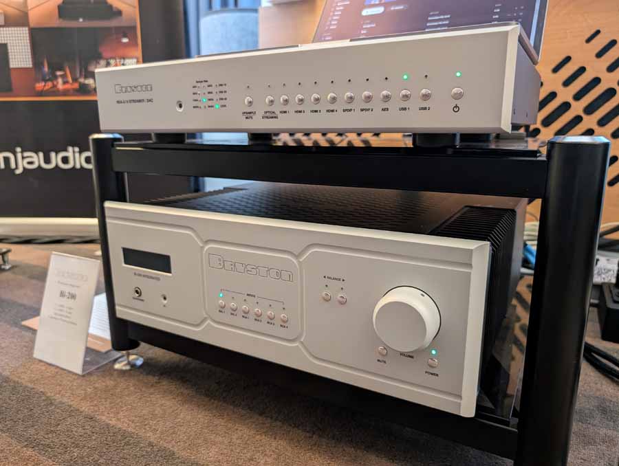 MJ Audio had a range of Vicoustic room treatments on demo alongside a demo system using the Bryston COMPACT T10 monitors, Bi-200 integrated amplifier and BDA 3.14 DAC/transport. Fairly balanced sound from these Bryston monitors, they seem to image very well too.