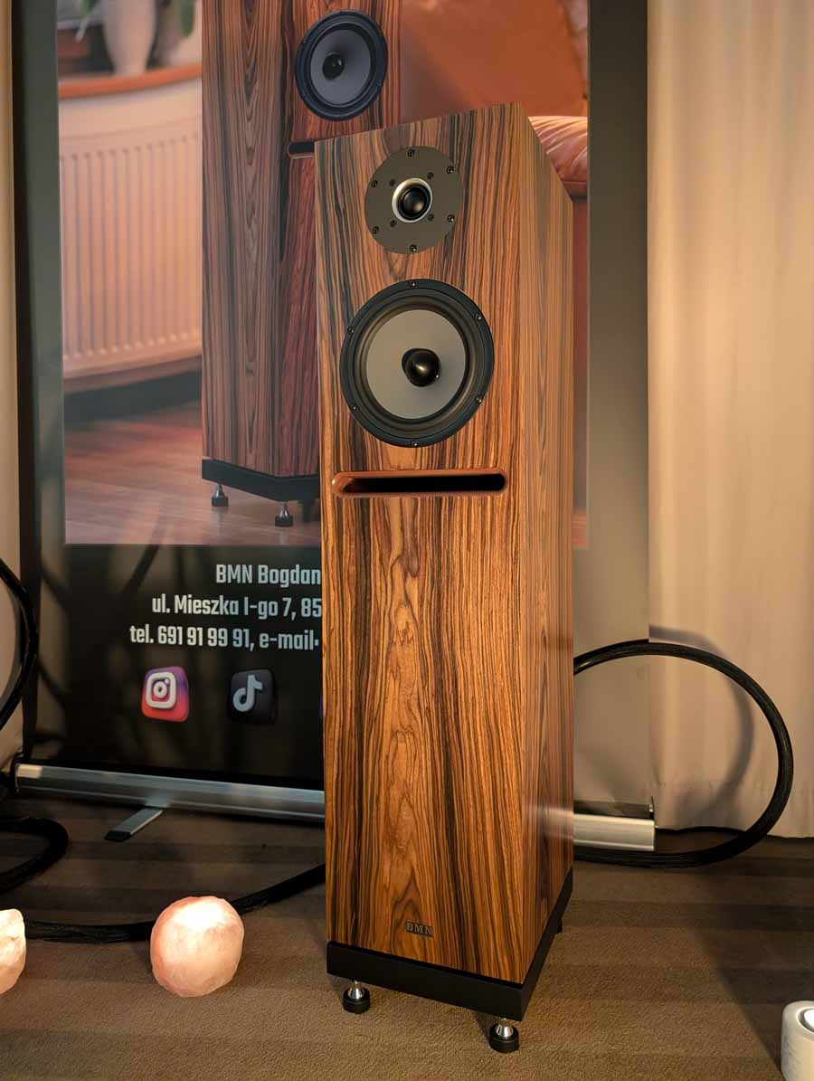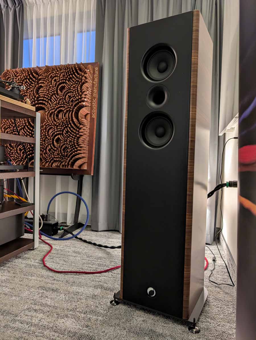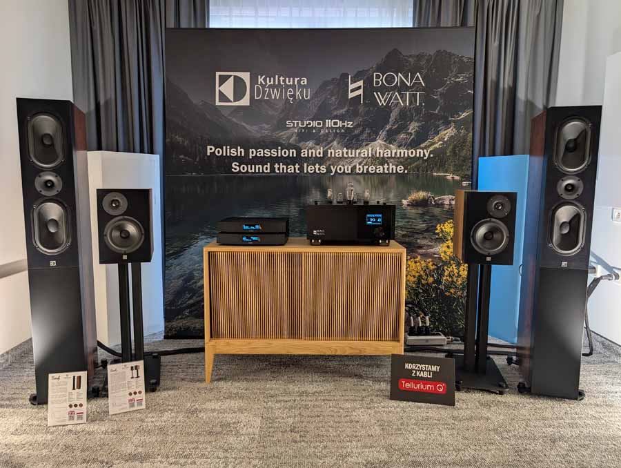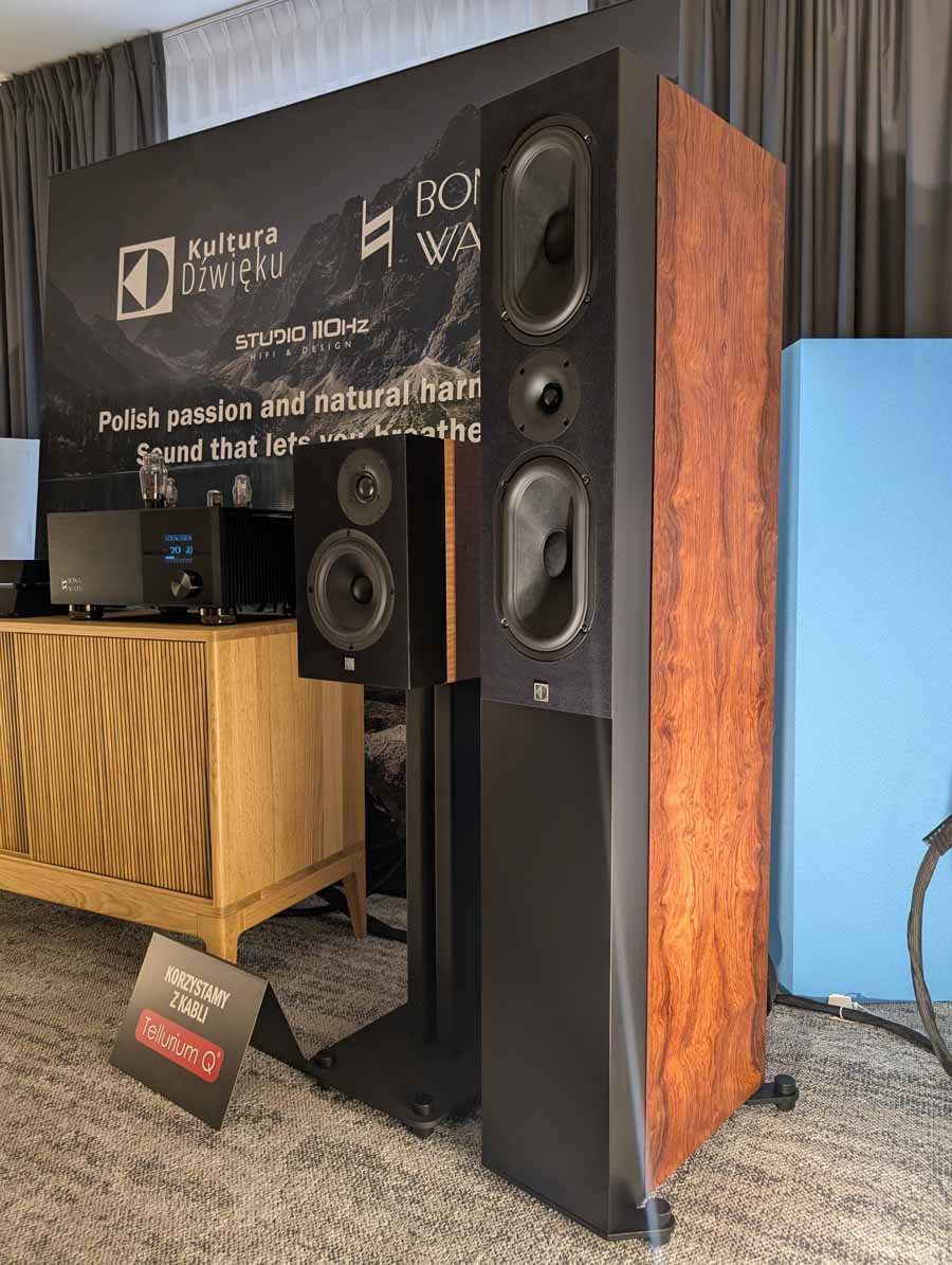 Kultura Dźwięku premiered the Soul 3 speakers in this room, these speakers were running off Bonawatt valve amplifiers, a Lumin streamer, and they had Tellurium Q cables all-round. The Soul 3 are a big sounding slim floor standing speaker, plenty of deep bass with great clarity throughout.
