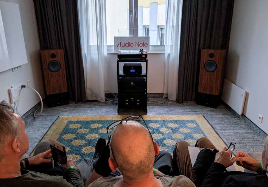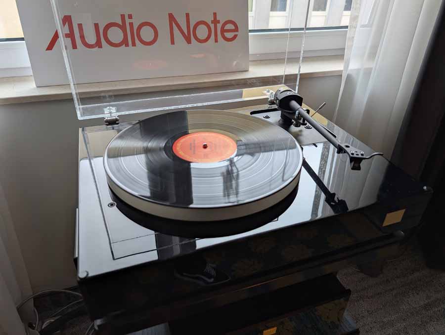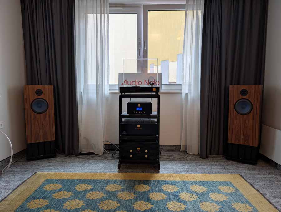 In the Audio Note UK room, we had their Meishu 300b Tonmeister integrated amplifier with Phono input, DAC 3.1X/II Balanced DAC, AN-E High Efficiency loudspeakers, CDT transport, and TT-2 dual-motor turntable. Audio Note always know how to set up a room at shows and this was no different, engaging, full, yet never bloated.