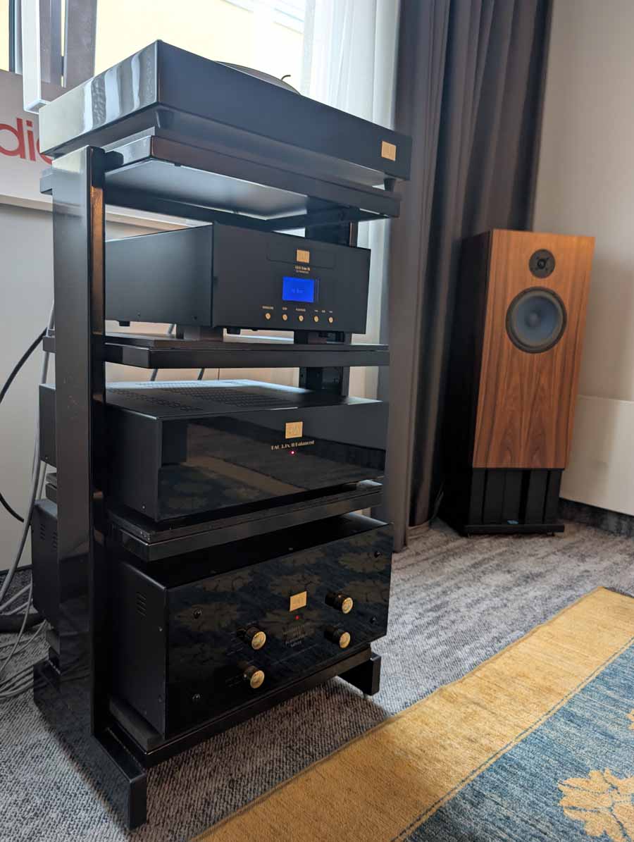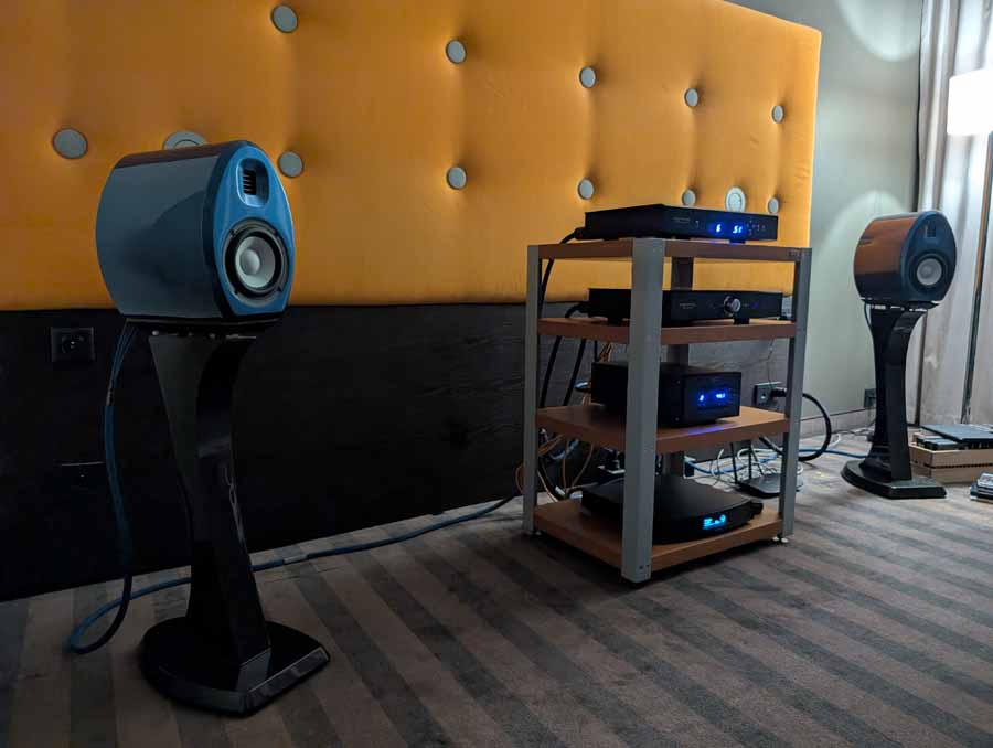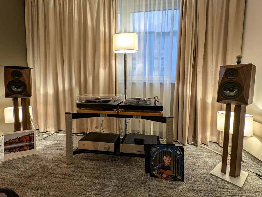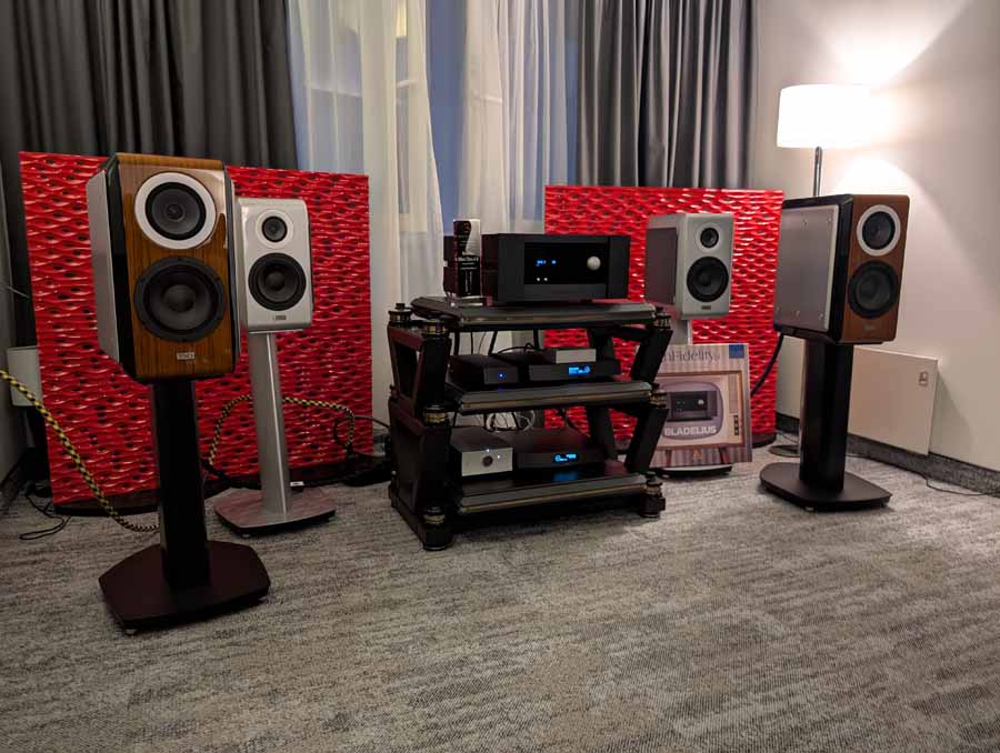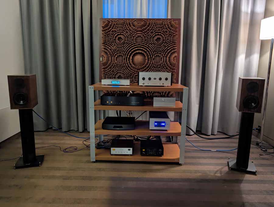 Audio Atelier had several rooms. In room 407 you could find the Bladelius Ask integrated amplifier, which has an integrated DAC and streamer, driving a pair of Ø Audio FRIGG speakers – once again brilliant sound from these Norwegian speakers. Even though these are a little smaller than the model heard earlier, they still managed to sound dynamic and punchy.