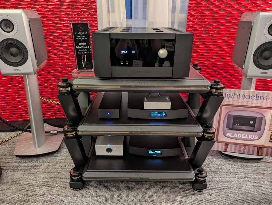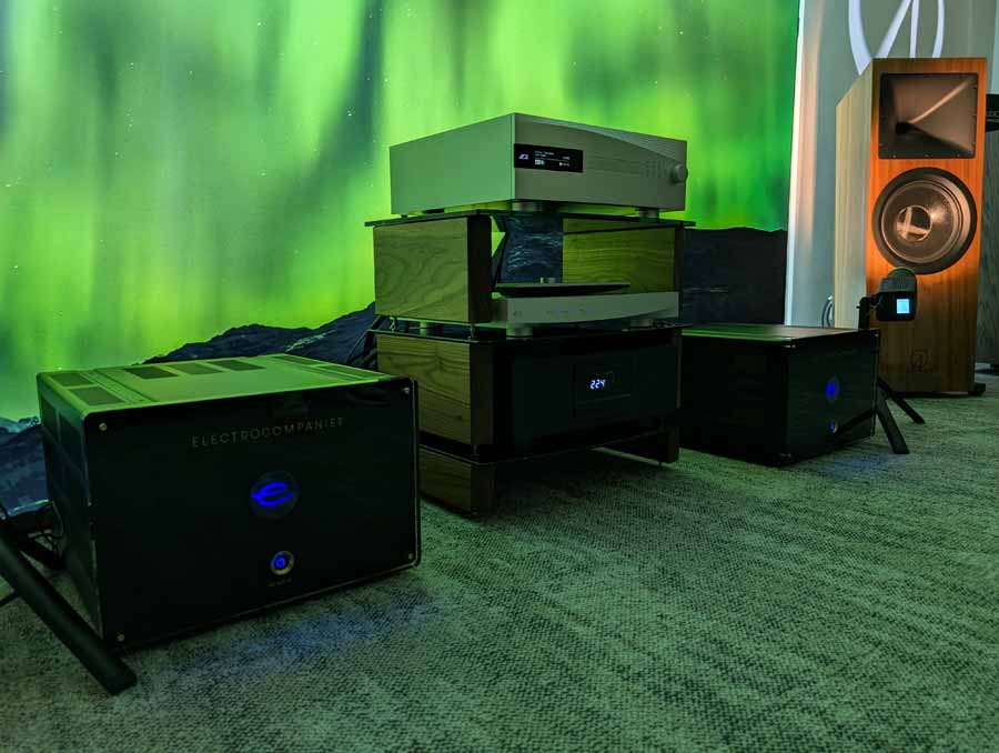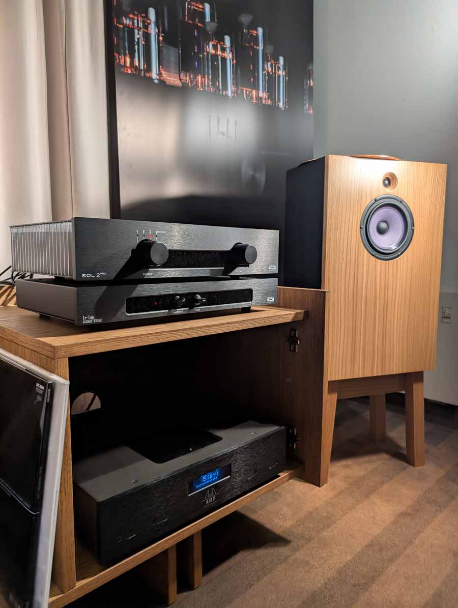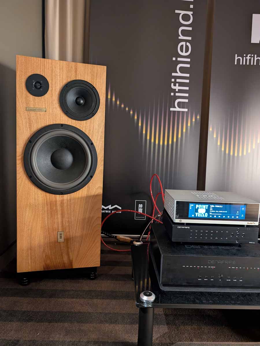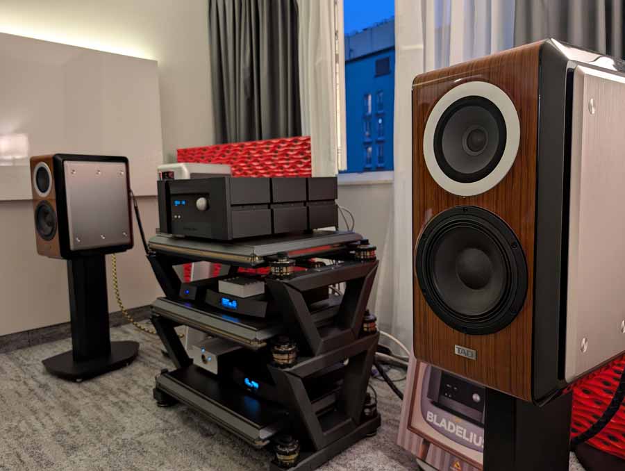 Audio Atelier had several rooms. In room 407 you could find the Bladelius Ask integrated amplifier, which has an integrated DAC and streamer, driving a pair of Ø Audio FRIGG speakers – once again brilliant sound from these Norwegian speakers. Even though these are a little smaller than the model heard earlier, they still managed to sound dynamic and punchy.