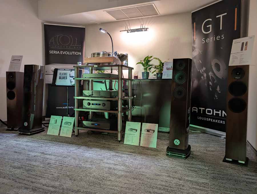 Audio Forte distributes a few brands such as Acoustic Solid, Atoll, Graham Slee and more. In this room they had both CD and vinyl systems setup with the Atoll IN400 Evolution integrated amp, DR200 Evolution transport, ST300 streamer, Atohm GT2 speakers and an Acoustic Solid turntable. This was an even-handed, quite relaxed room, although they were playing quite soft blues music so it may have just been that. The new Atohm GT2 did sound great though, with a clean, and detailed sound.