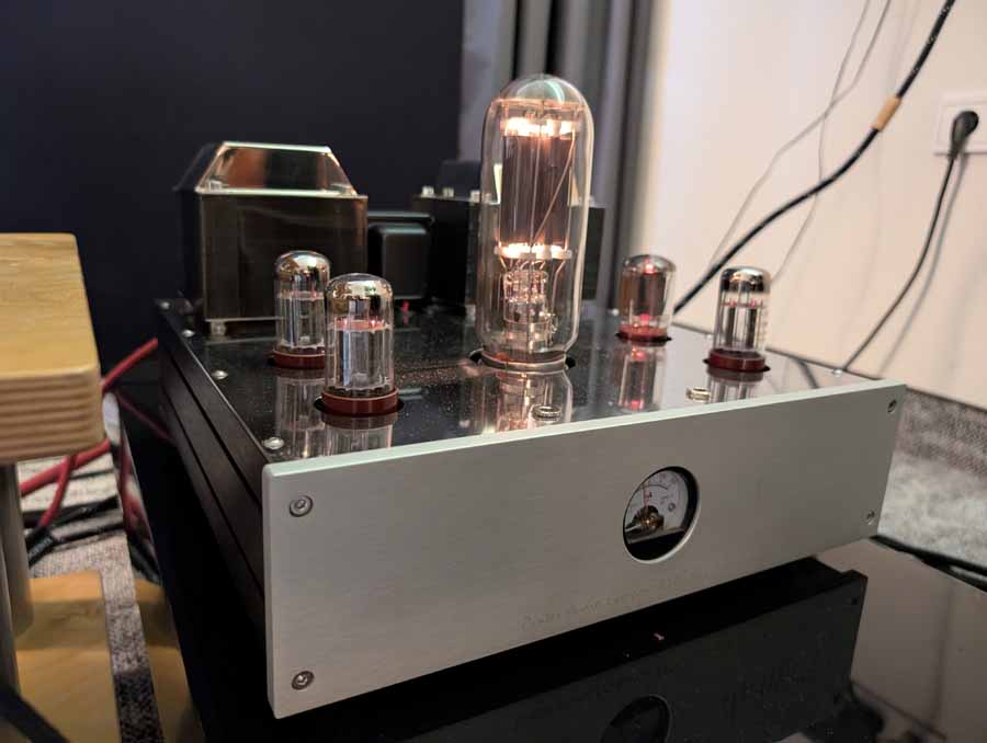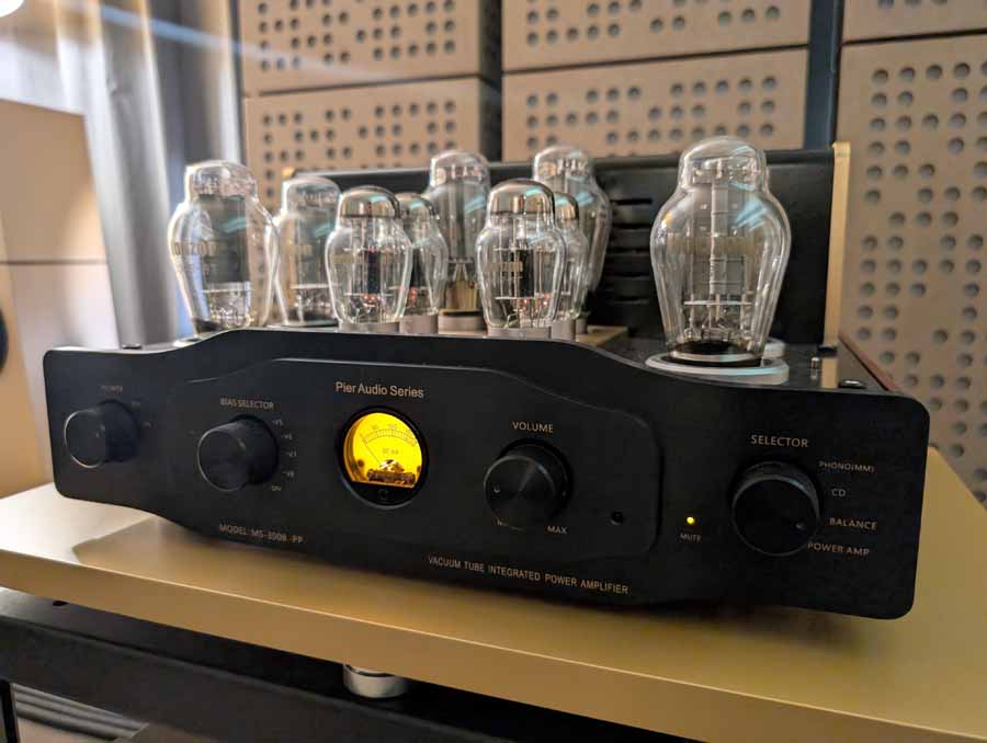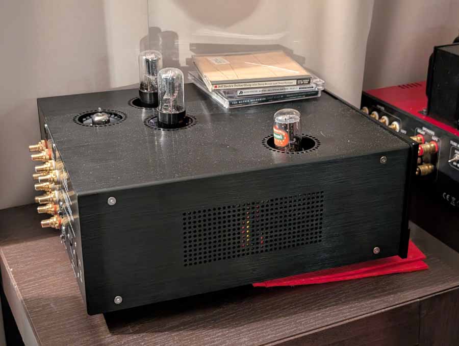 The first system we listened to had the Pier Audio 300b amp, and it sounded fantastic, someone requested some techno music and it handled it with ease. This was not a “woolly” sounding tube amp, instead it had a firm grip over the speakers’ drivers and dynamics were a real strong point in this setup.