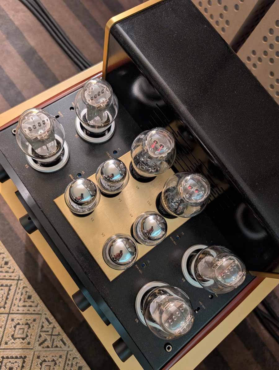 Ideon had a full range of electronics on demo, paired with a pair of hORNS Symphony 10 speakers, and a LAB12 Suono power amplifier. I’m enjoying what I’m hearing from the hORNS and they do pair very nicely with valves.