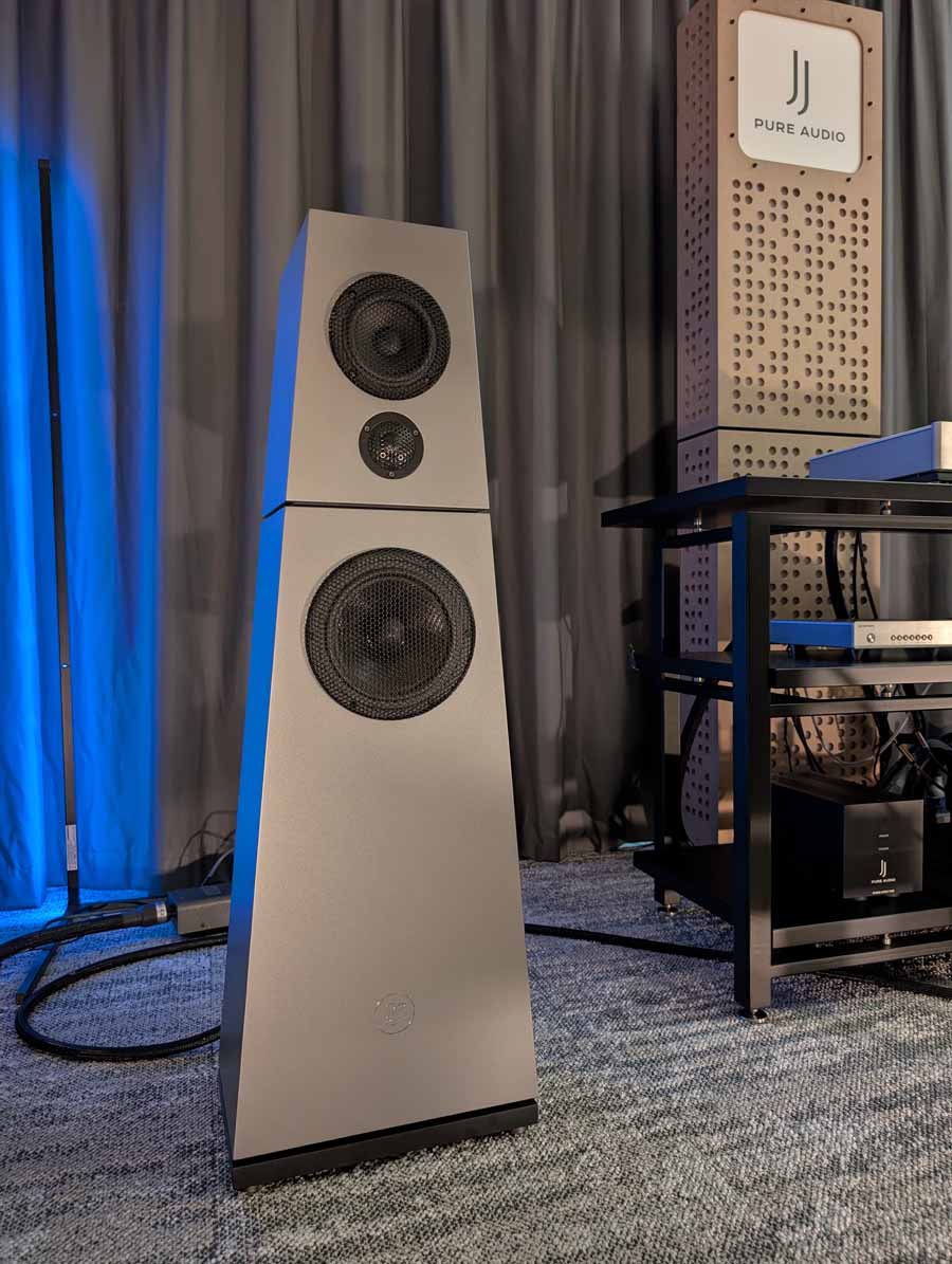 Skala make speakers, and at the show they were showing off a new take on their Kaliope model – Velvet, which brings an even more refined and “velvety” presentation. They also showed a new bookshelf model, the Kaliope Monitor. We got to listen to the Monitor speaker, they were being powered by Fosi amplifiers, a Wiim mini, Chord Mojo II and a little FX-Audio valve pre-amp. This was an affordable setup in terms of electronics, which didn’t detract from the sound of the speakers – which was punchy, energetic, and clear.