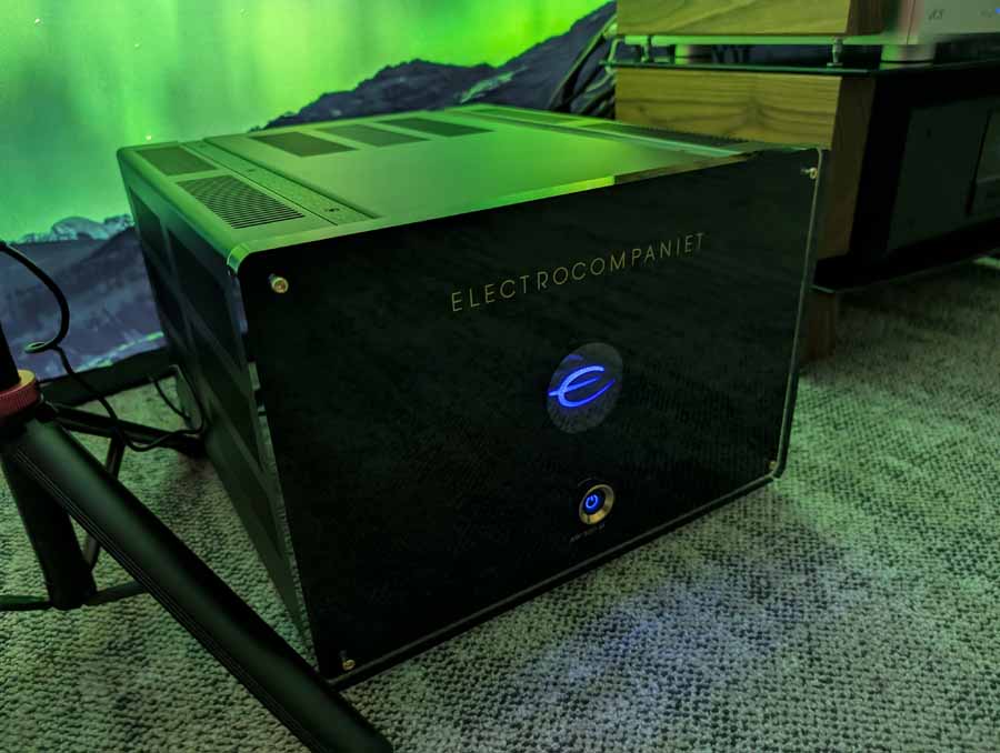 Now, I first saw the Ø Audio speakers back at the Oslo show, and have since experienced them at a few other shows, and I know Stu highly enjoyed his time with the Icon 12 too. Well, they just so happened to have the Icon 12 speakers playing with Electrocompaniet electronics and Tellurium Q cabling – what a system. They played a track specially for me, as they know my taste, Wolf Totem by The Hu. These speakers have incredible drive and body, they hit hard with real impact, without ever losing track of the intricate details. Even in this small-ish room, they never sounded overpowering. The Electrocompaniet AW800 M monoblocks retaining excellent grip over the speakers, and a DCS network streaming DAC.