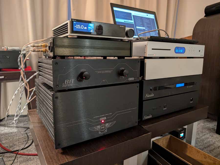 They were using 15th anniversary edition Denafrips R-2R DACs in the system; this room had the Class-A solid state amp from JJ Pure Audio whilst the other room was using a tube amp with 300b tubes in push-pull configuration – from Pier Audio.