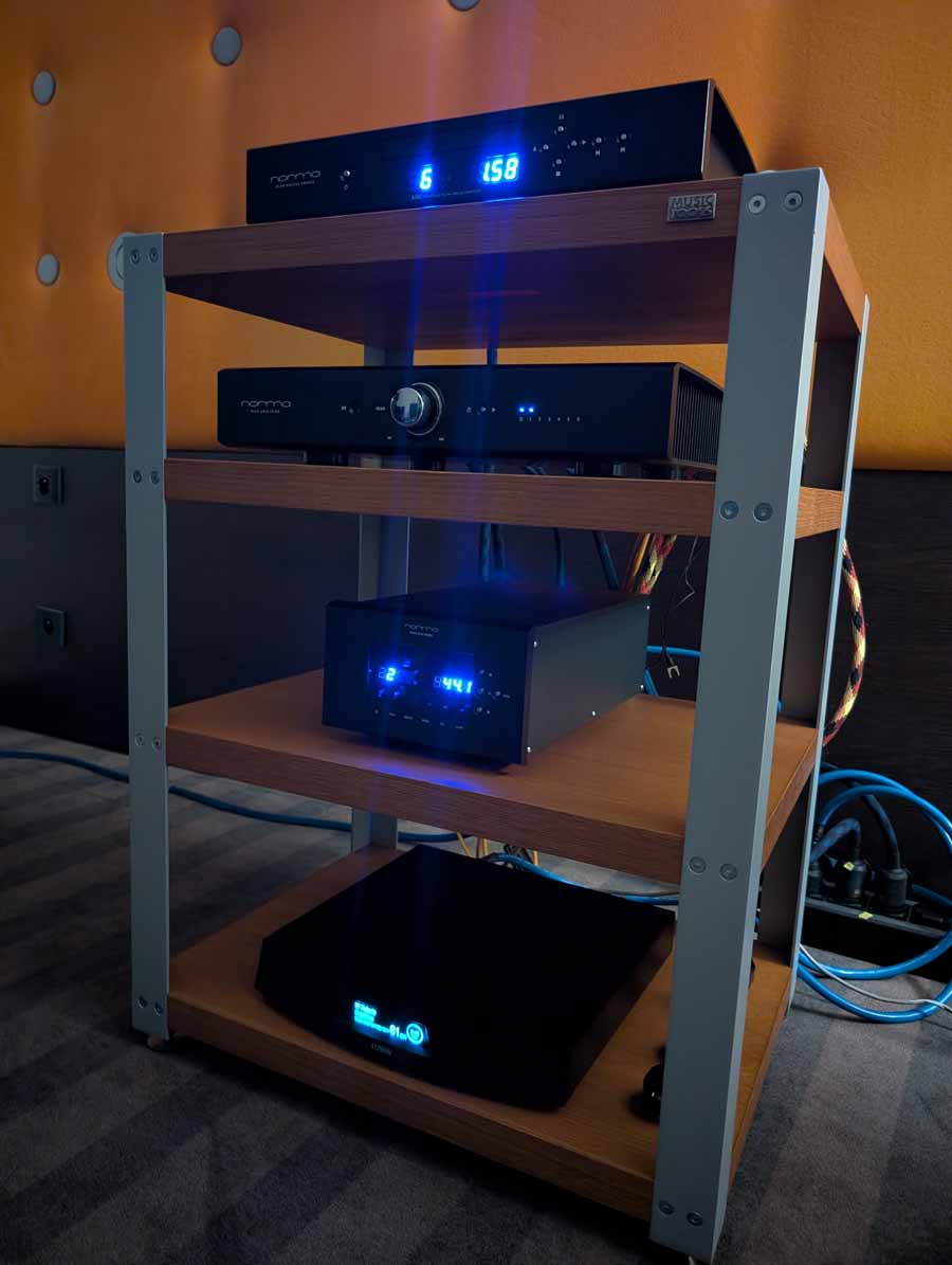 406 was a room shared with Multidine, alongside Norma Audio and their Revo IPA-80 and HS-IPA1 amplifiers, and CDP-2 CD player. They also had a Lumin U2 streamer in this system, playing through the Norma HS-DA1 DAC. They were playing some Pink Floyd in here and it was a great little system – yes, the speakers didn’t quite fill the room as well as some other bigger ones, yet they held their own and had great imaging.