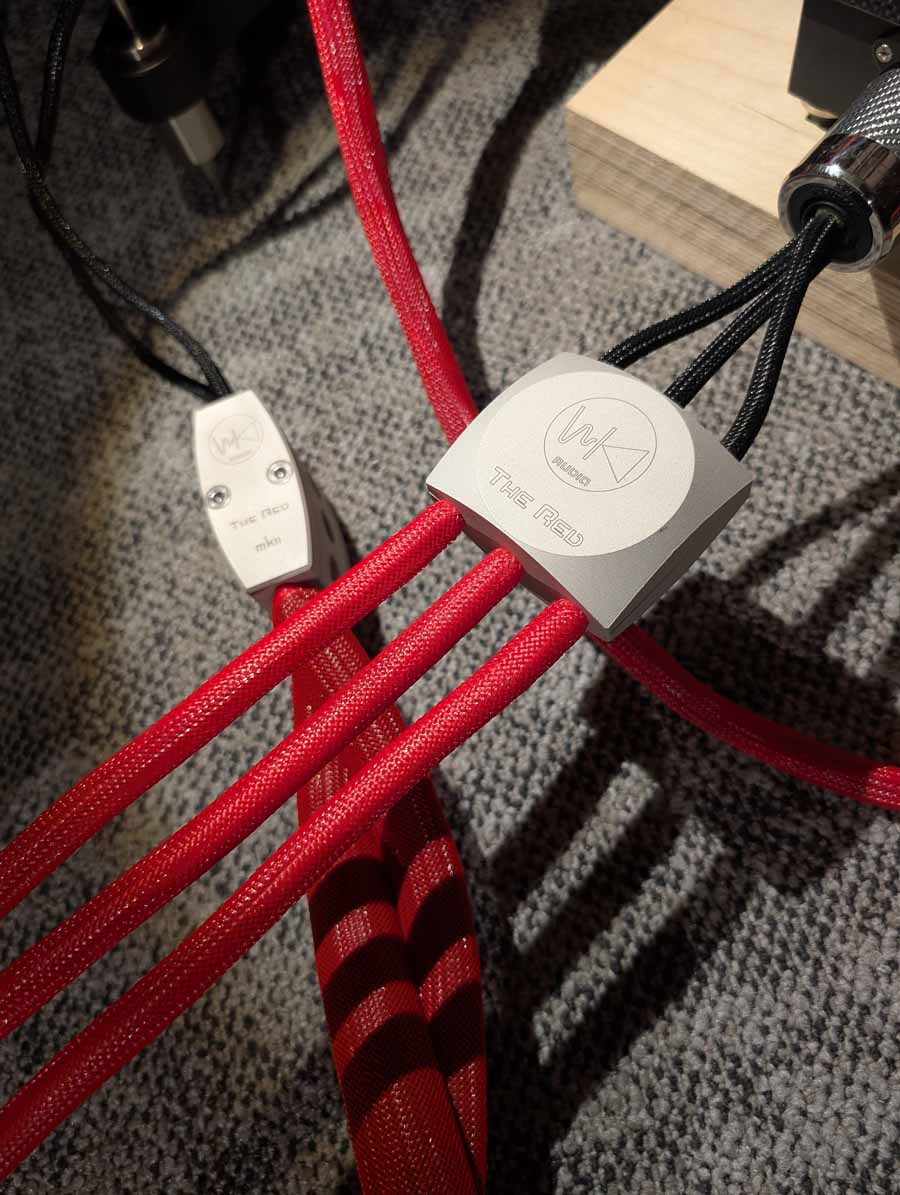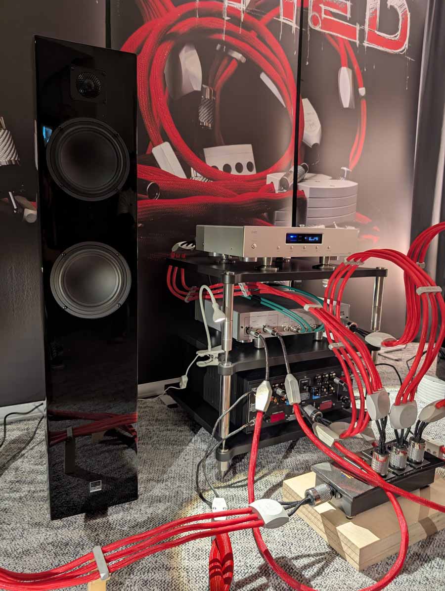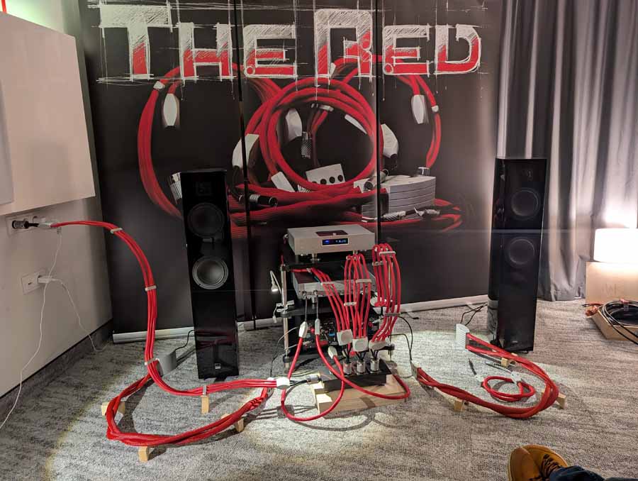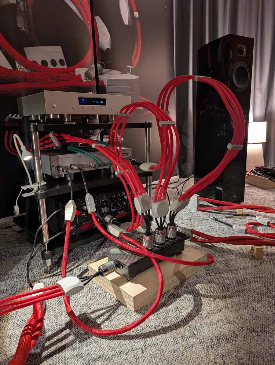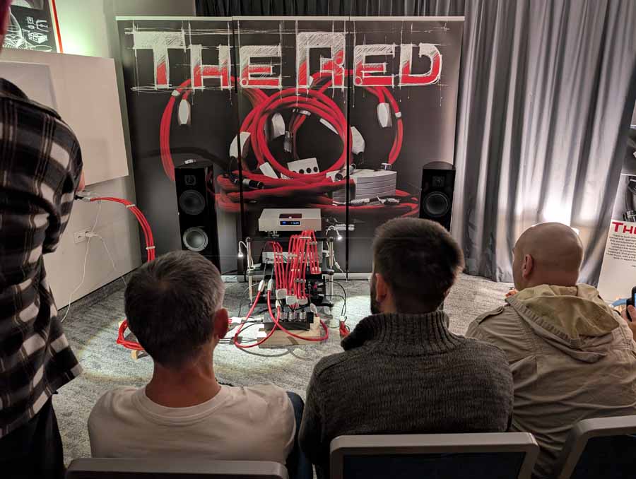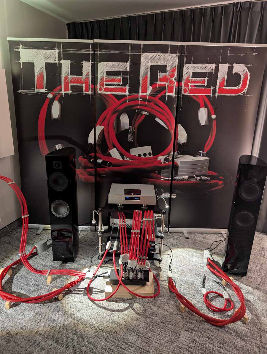 WK Audio make a range of cables, here you could find the premiere of their new TheRed MKII flagship speaker cable price at a measly €10,000 – entirely hand made in small batches. They also had their entry level range, TheOne series, on show. Sadly, they were playing Hotel California in this room, the cables are pretty though.