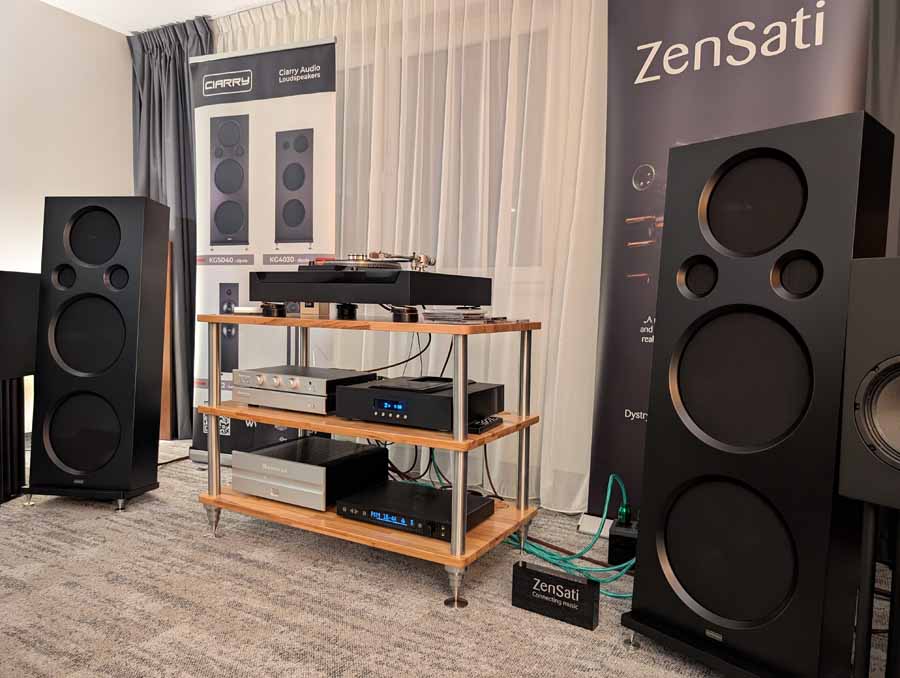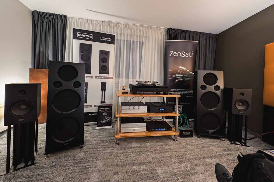 Ciarry had their latest generation of speakers, the KG5040 MK2 on demo, alongside their C8 standmount, driven by Bryston amplifiers and using ZenSati cabling throughout. The KG5040 MKII sounded lovely, but again some soft female vocals were playing that didn’t really give me a good taste of what these are capable of. They do handle the vocal range well though, with plenty of detail and air.