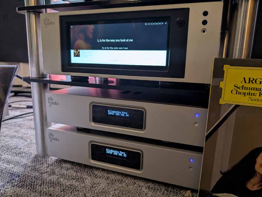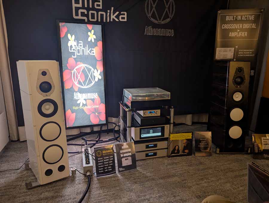 Athenamuse make a huge range of cables for pretty much any component in your system, they had a demo system using Ellasonica speakers which feature diamond tweeters and a full complement of Ellasonica amplifiers including active crossover bi-amping. These are clear, crisp speakers that focus on clarity, and openness of sound – an enjoyable listen without harshness.