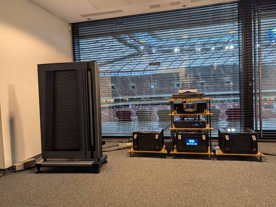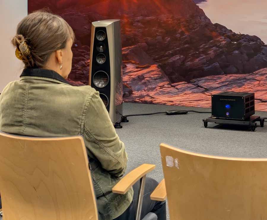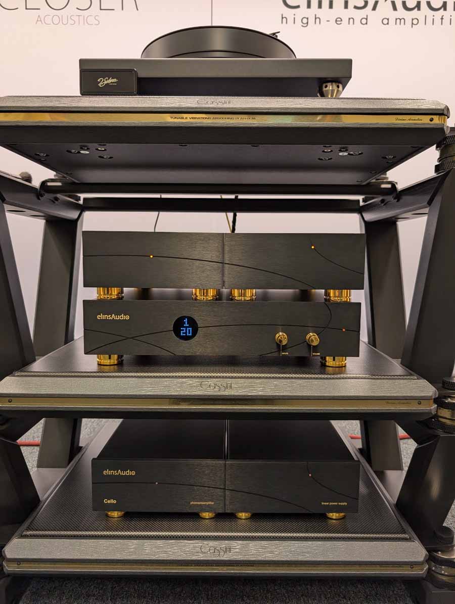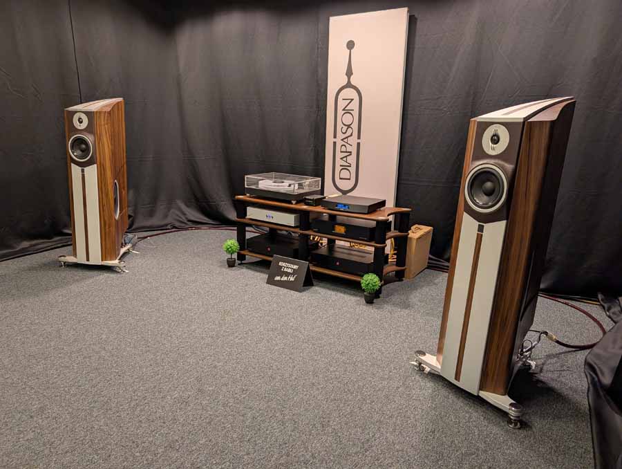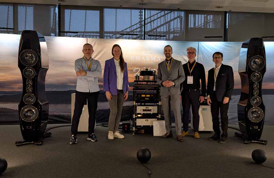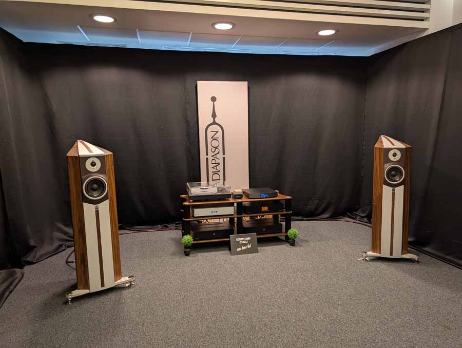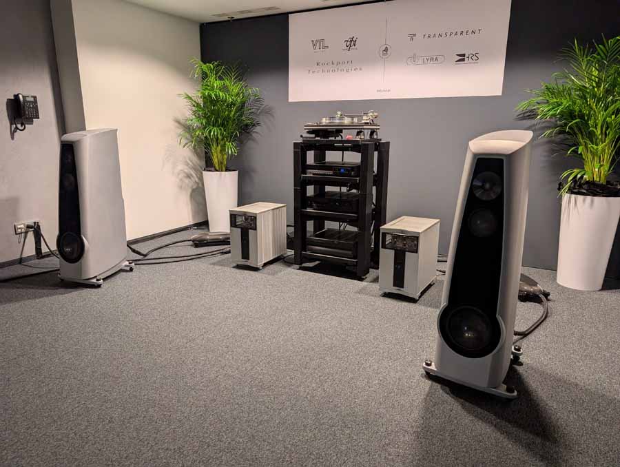 DreamAudio is a distributor focused on complete systems. At the show the company presented the world premiere of the Kroma Atelier Maribel loudspeakers, driven by Ypsilon Electronics Silver Edition 4 monoblocks and a matching preamplifier. The setup included the Taiko Olympus server, Stage III Concepts cabling, Carbide Audio isolators, HiFi Stay racks, and Telos power distribution and grounding. The Maribel stands over two metres tall and is priced at about €425,000.