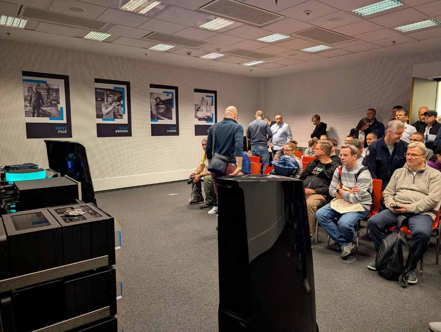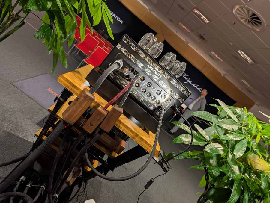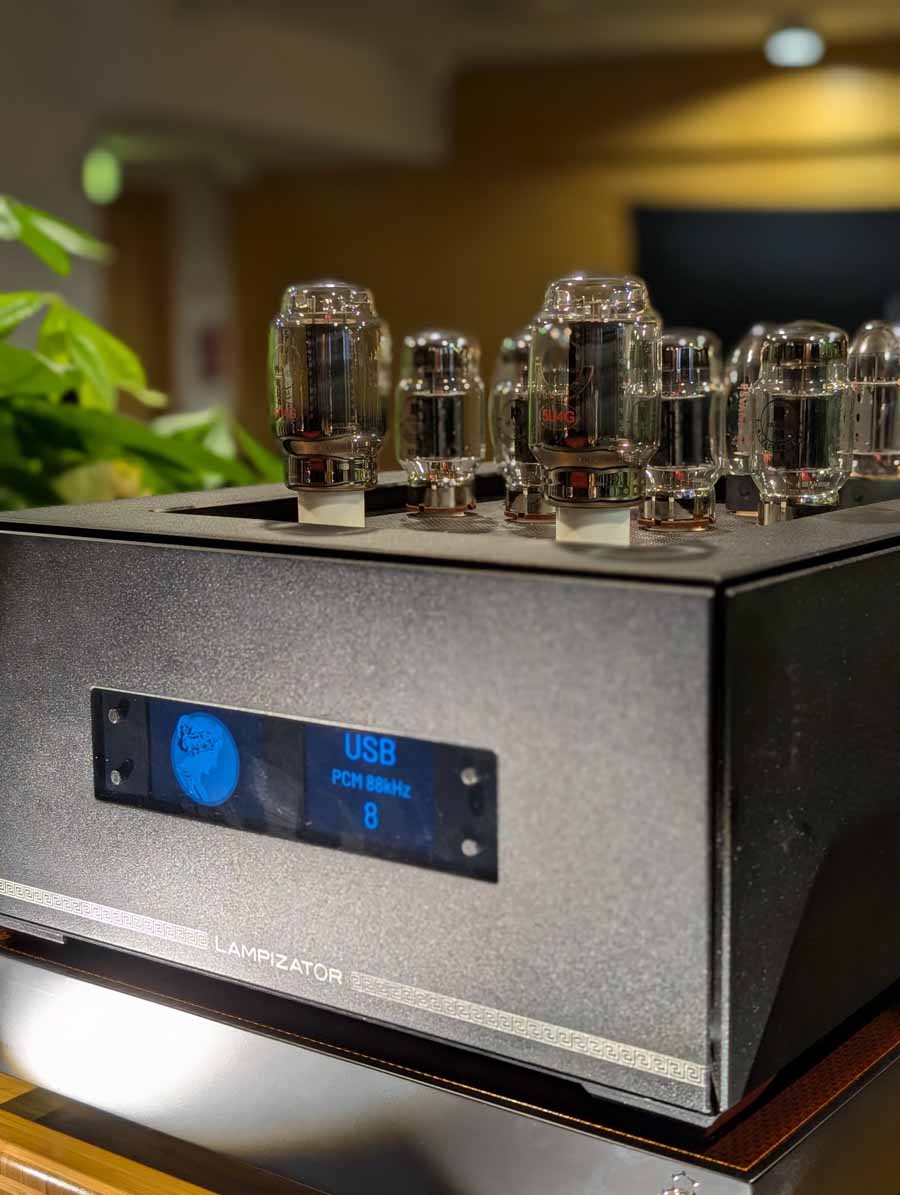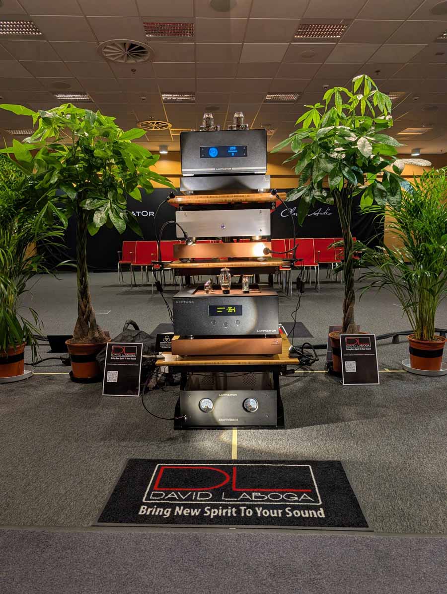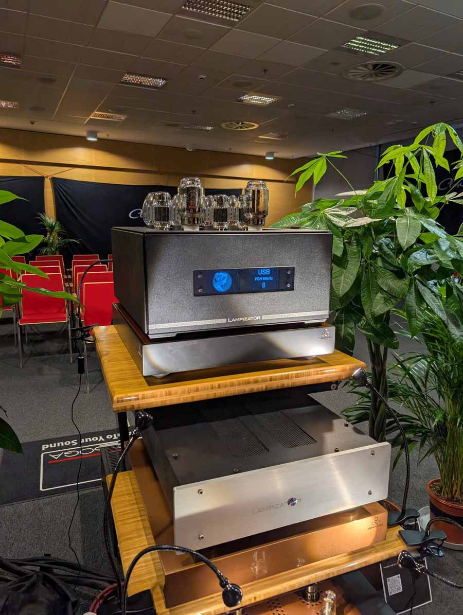 First up at the National Stadium (and before the crowds arrived) was the Amsterdam room where Lampizator unveiled the Aphrodite DAC at 88,000€ plus taxes, but Lukaz tells us he has already sold 26, even before people have heard it – now that’s a great reputation to have. This new DAC is positioned above the Horizon. It used a dual power supply with two rectifier valves and eight KT88s. The digital section introduced a new reclocking system with a FIFO buffer and very low noise quartz oscillators.