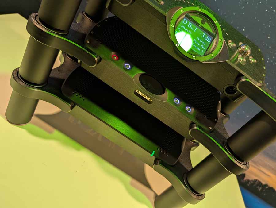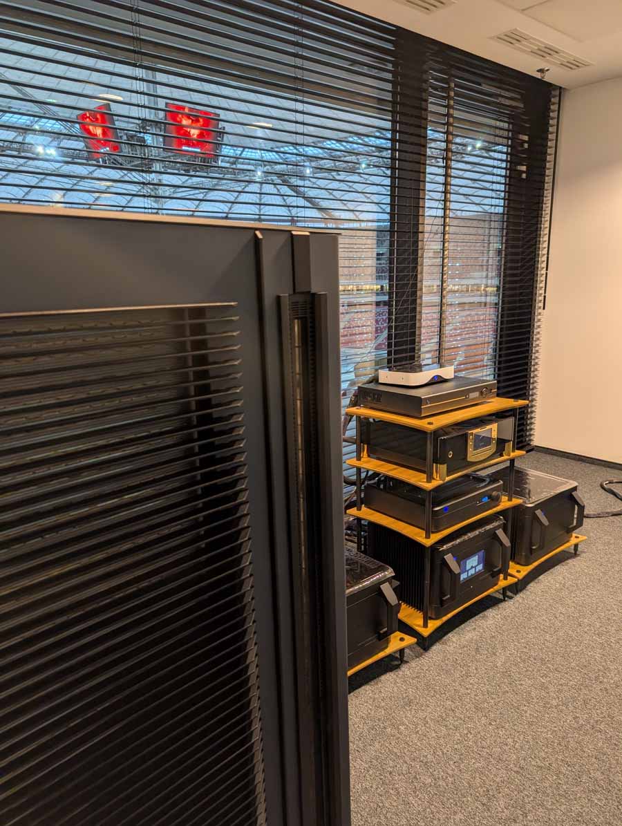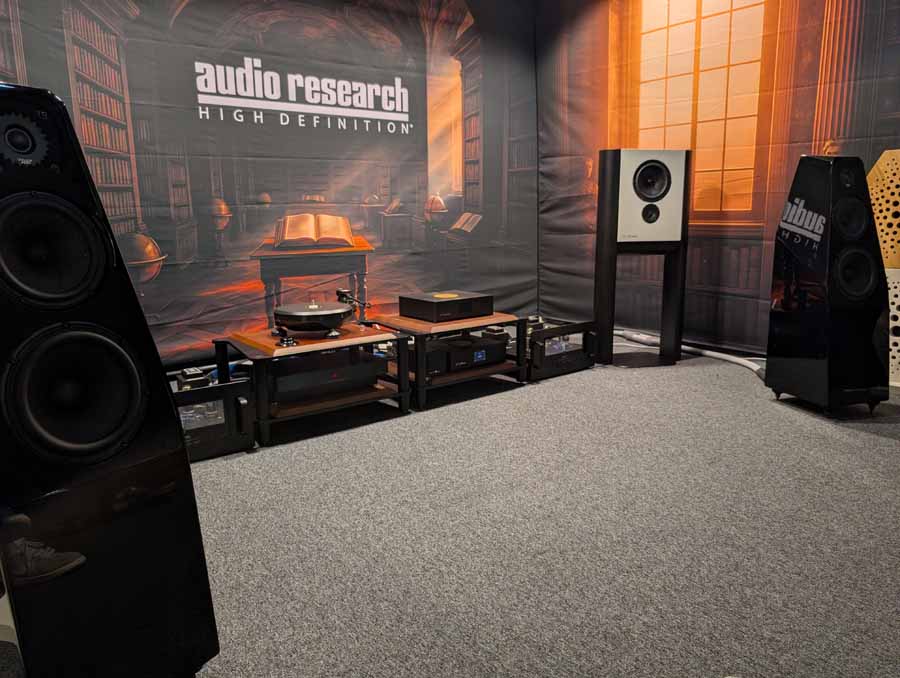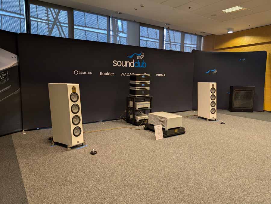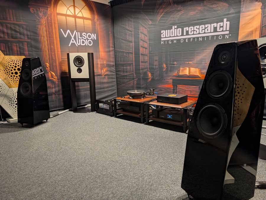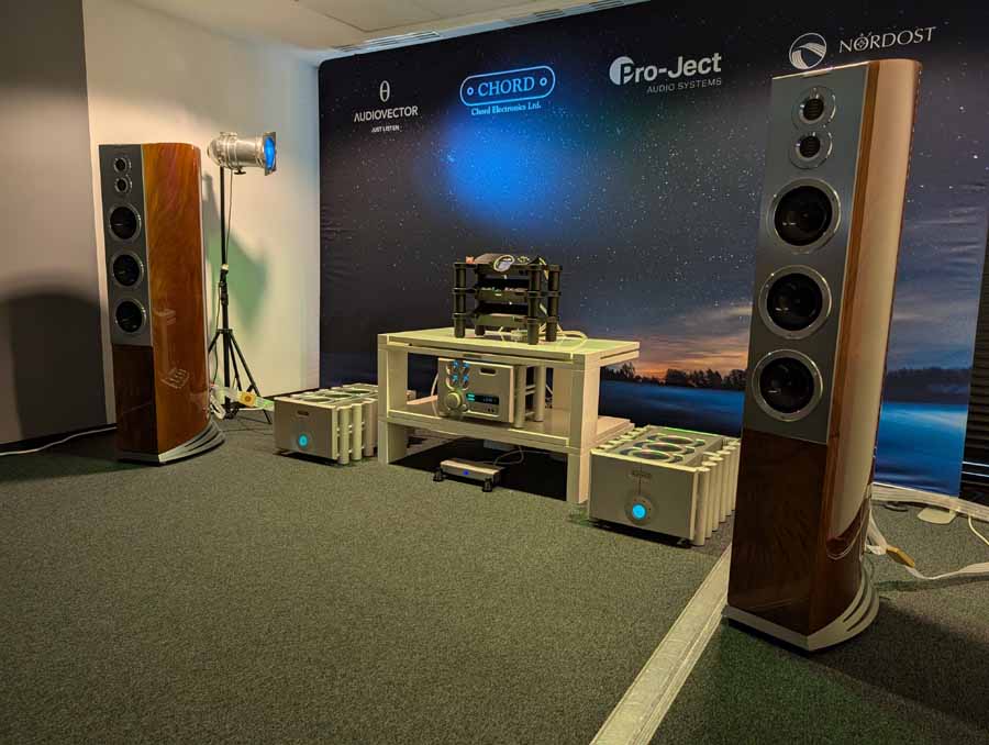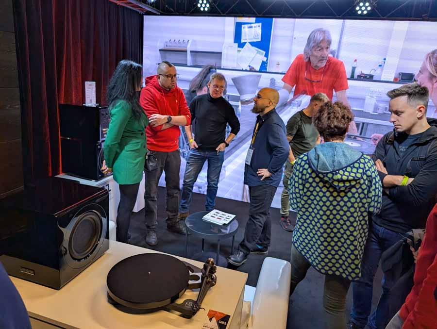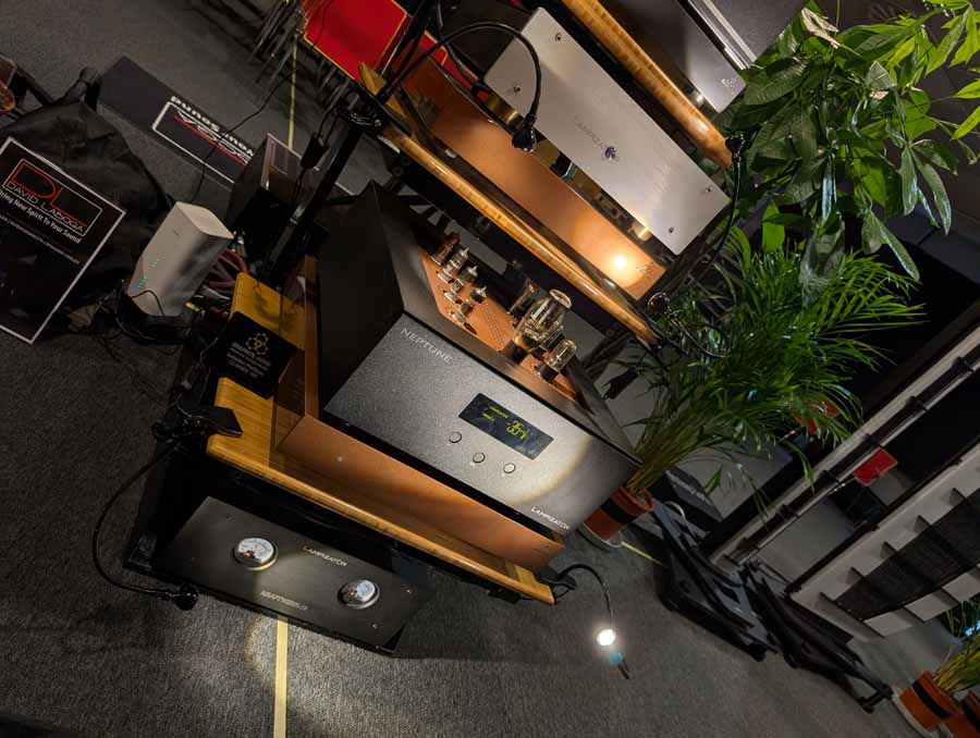 TV Studio 2, another hectic room that we had to fight to get into, featured an ultra high end setup centred on Wilson Audio Alexx VFx loudspeakers and Dan D’Agostino Relentless 800 monoblocks, paired with the new Momentum C2 preamplifier. The digital source was a full dCS Vivaldi Apex system with upsampler, master clock, and a Synergistic Research Voodoo server. Additional components included Shunyata Research Altaira X grounding, Artesania Audio racks, and cables from Stealth Audio, Shunyata Research, and Synergistic Research.