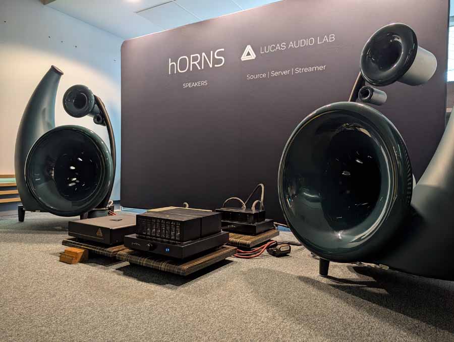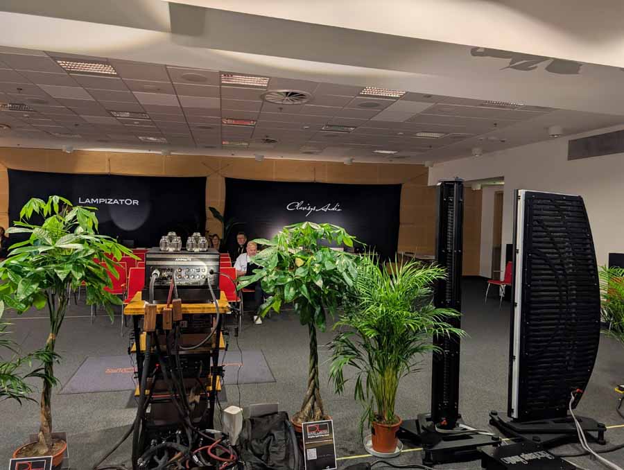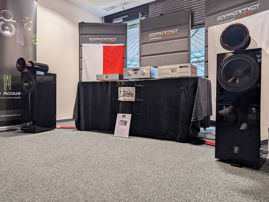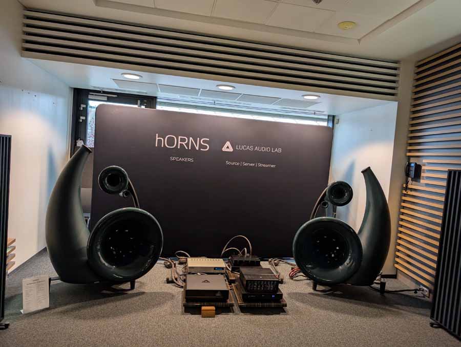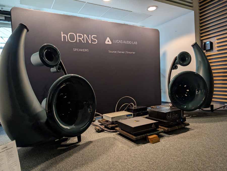 Lucas Audio Lab presented the latest MiniMax music server. The design combined precision engineering with distinctive finishes in exotic hardwoods or painted aircraft grade aluminium. At Warsaw AVS the streamer was partnered with the excellent hORNS loudspeakers from Poland. Amplification was from Qualiton of Hungary.We got to listen to The Heroic Weather Conditions of the Universe by Alexandre Desplat which was a good choice to show of the dynamic nature of the Universum hORNS, they are perhaps one of the more recognisable speakers out there.