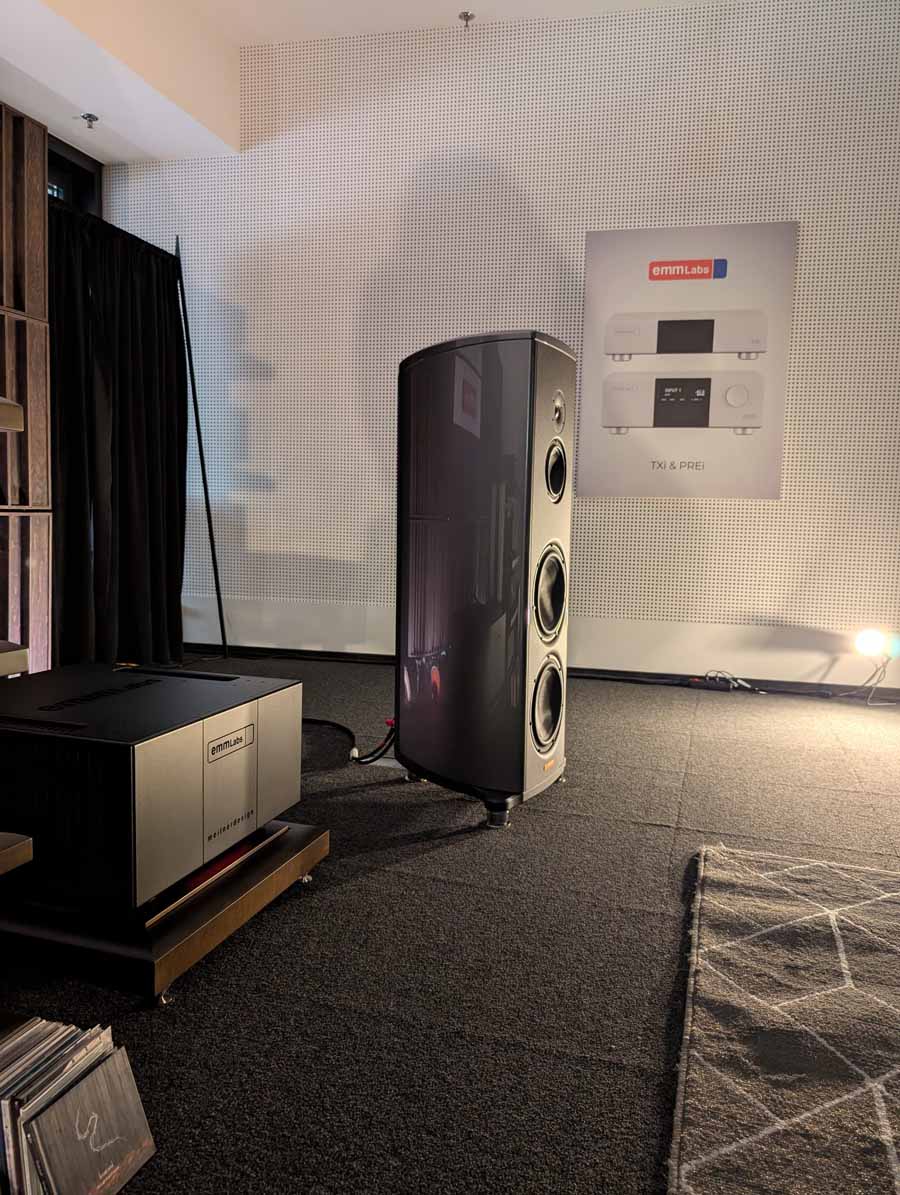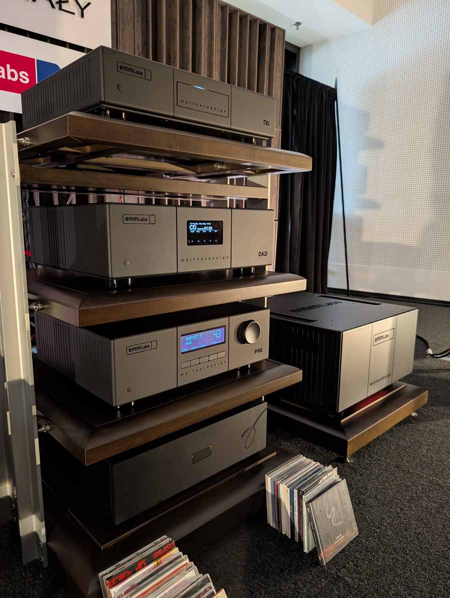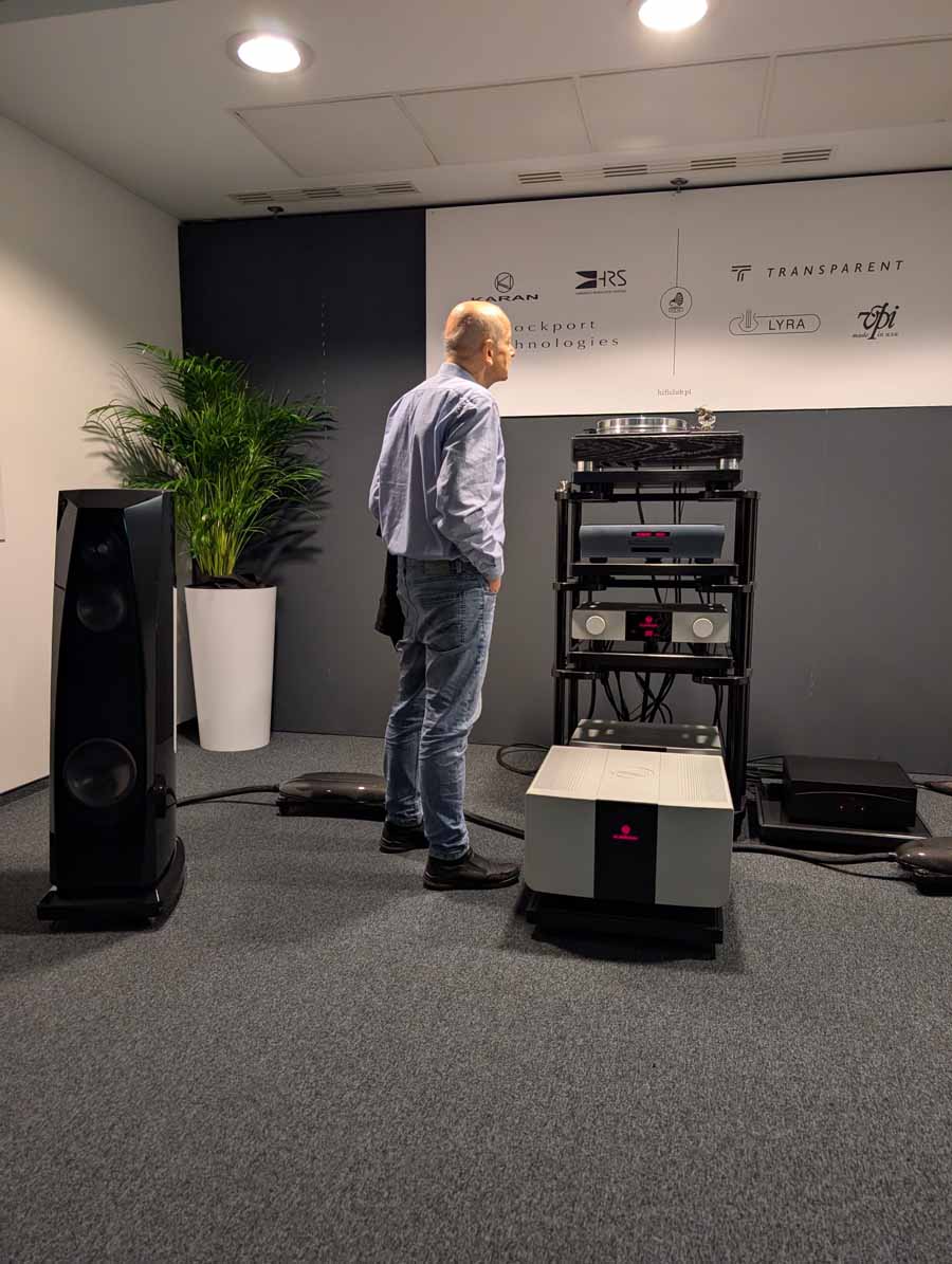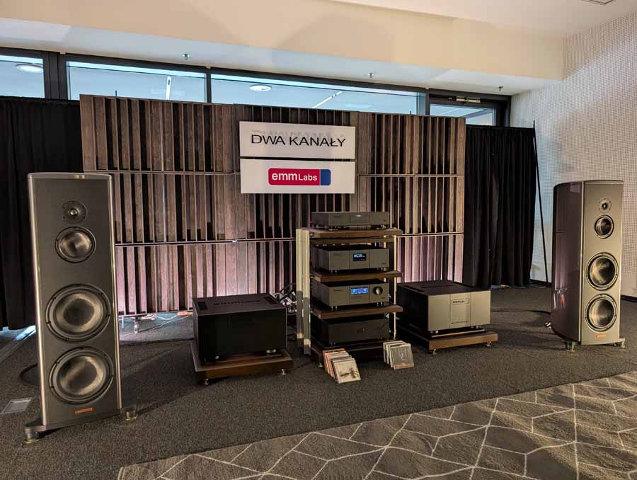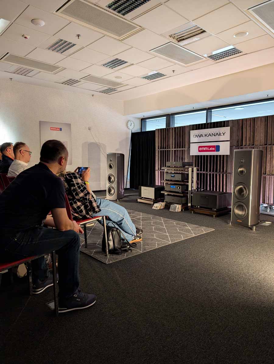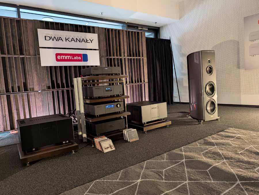 EMM Labs, led by Ed Meitner, ran an extensive demonstration organised by distributor Dwa Kanały and hosted by Amadeus Meitner. Electronics included MTRX2 V2 monoblocks, the upcoming PREi preamplifier set for 2026, the DA2i DAC, and the TXi CD transport. Magico’s new S5 loudspeakers partnered the system. This was the first large scale Polish presentation of the latest EMM Labs designs.