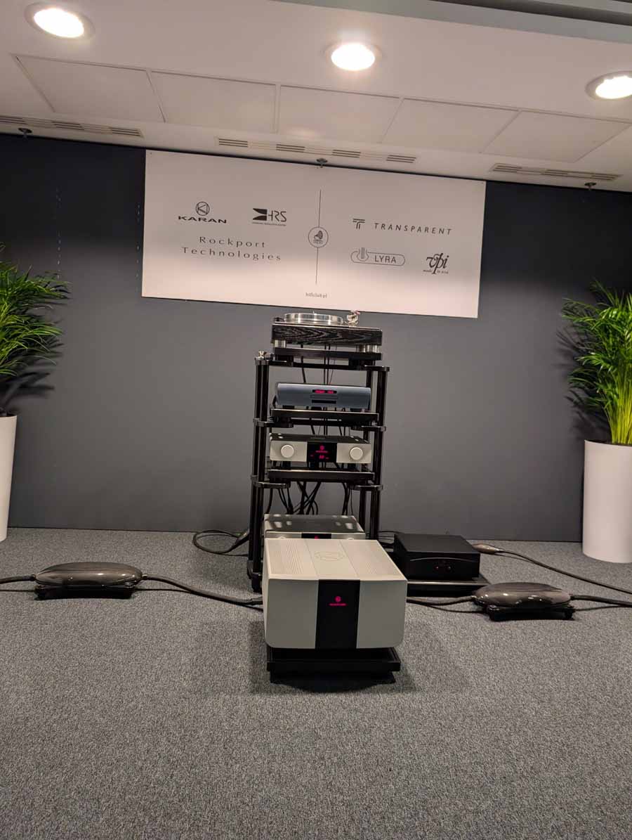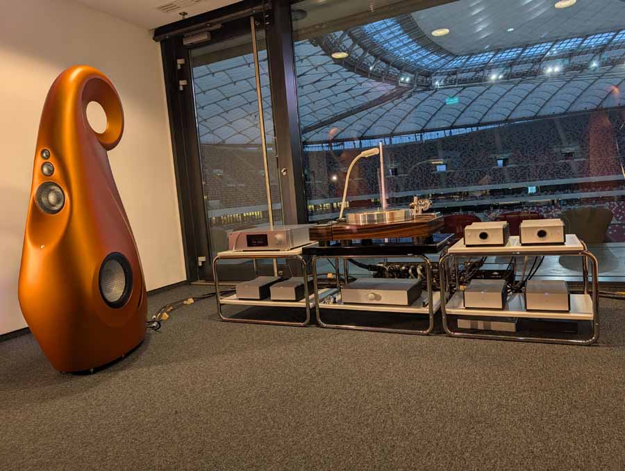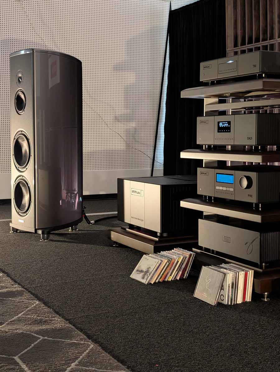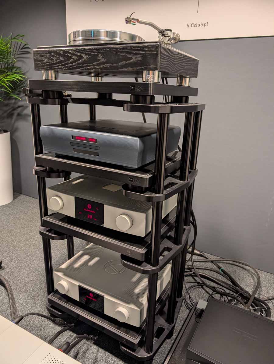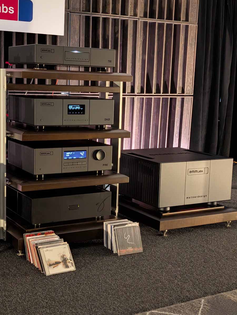 EMM Labs, led by Ed Meitner, ran an extensive demonstration organised by distributor Dwa Kanały and hosted by Amadeus Meitner. Electronics included MTRX2 V2 monoblocks, the upcoming PREi preamplifier set for 2026, the DA2i DAC, and the TXi CD transport. Magico’s new S5 loudspeakers partnered the system. This was the first large scale Polish presentation of the latest EMM Labs designs.
