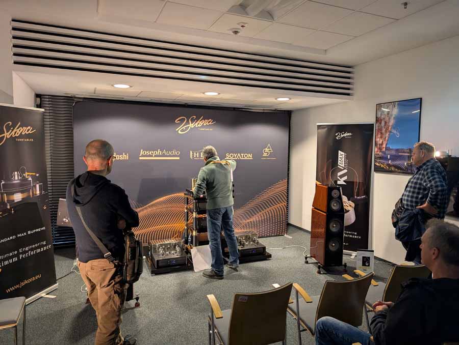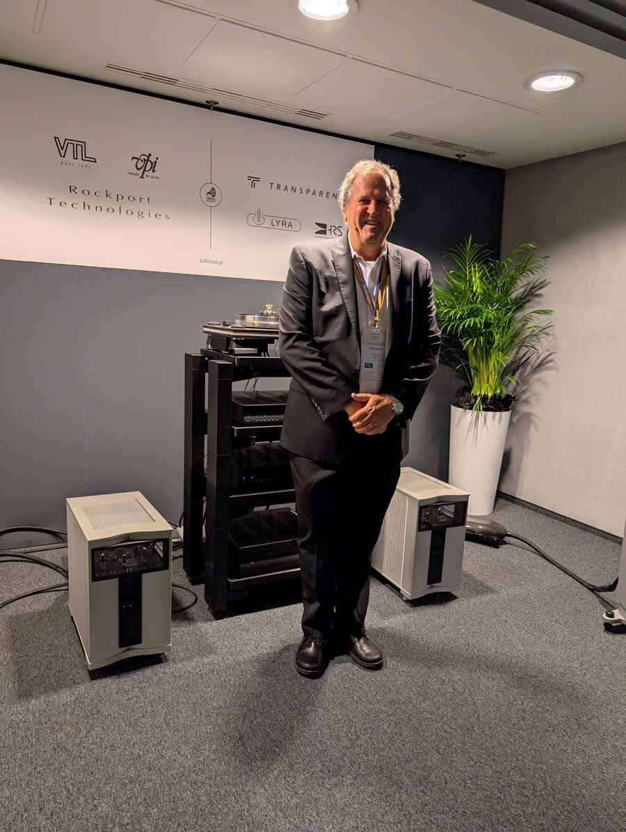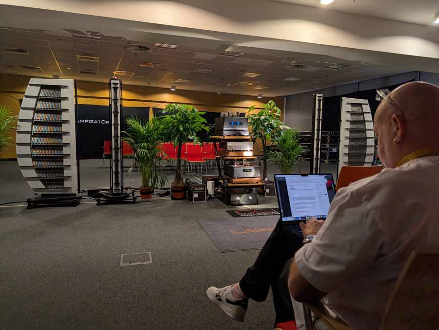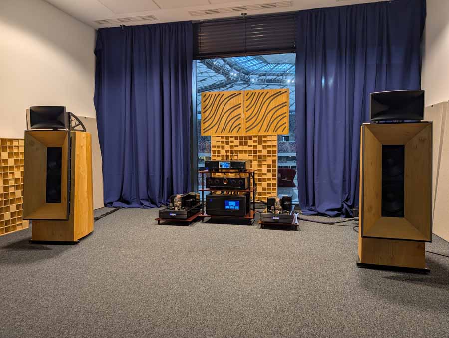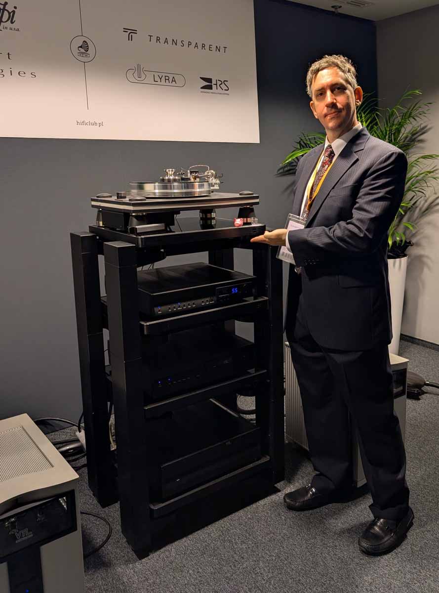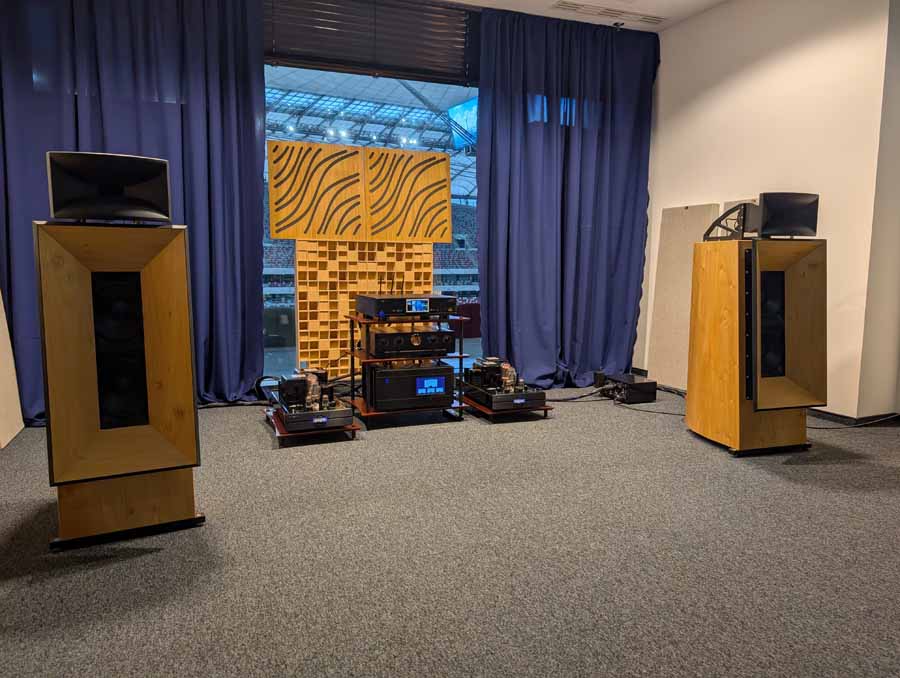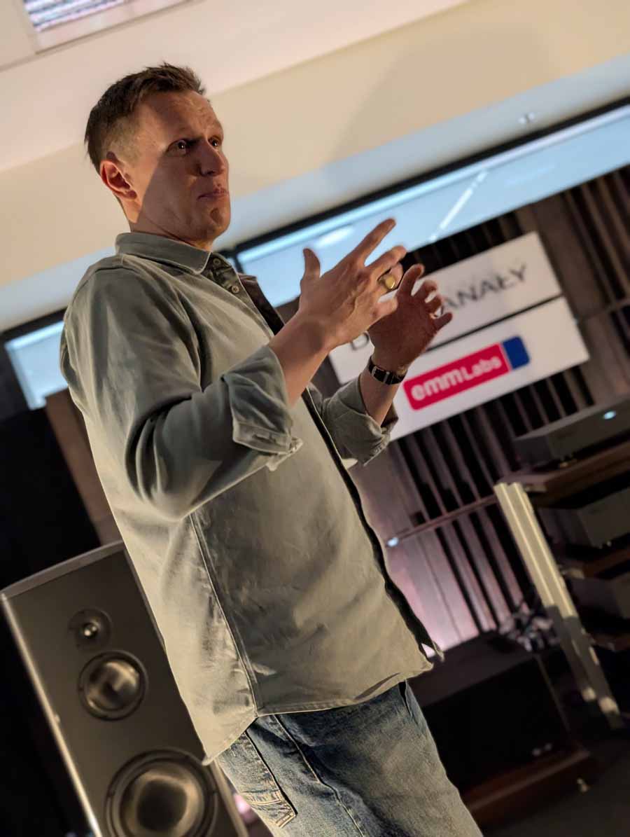 EMM Labs, led by Ed Meitner, ran an extensive demonstration organised by distributor Dwa Kanały and hosted by Amadeus Meitner. Electronics included MTRX2 V2 monoblocks, the upcoming PREi preamplifier set for 2026, the DA2i DAC, and the TXi CD transport. Magico’s new S5 loudspeakers partnered the system. This was the first large scale Polish presentation of the latest EMM Labs designs.