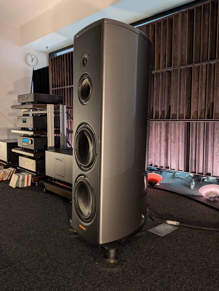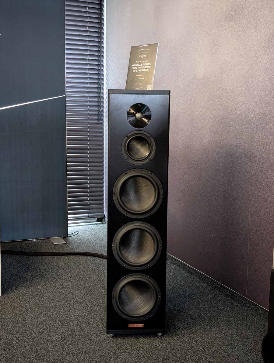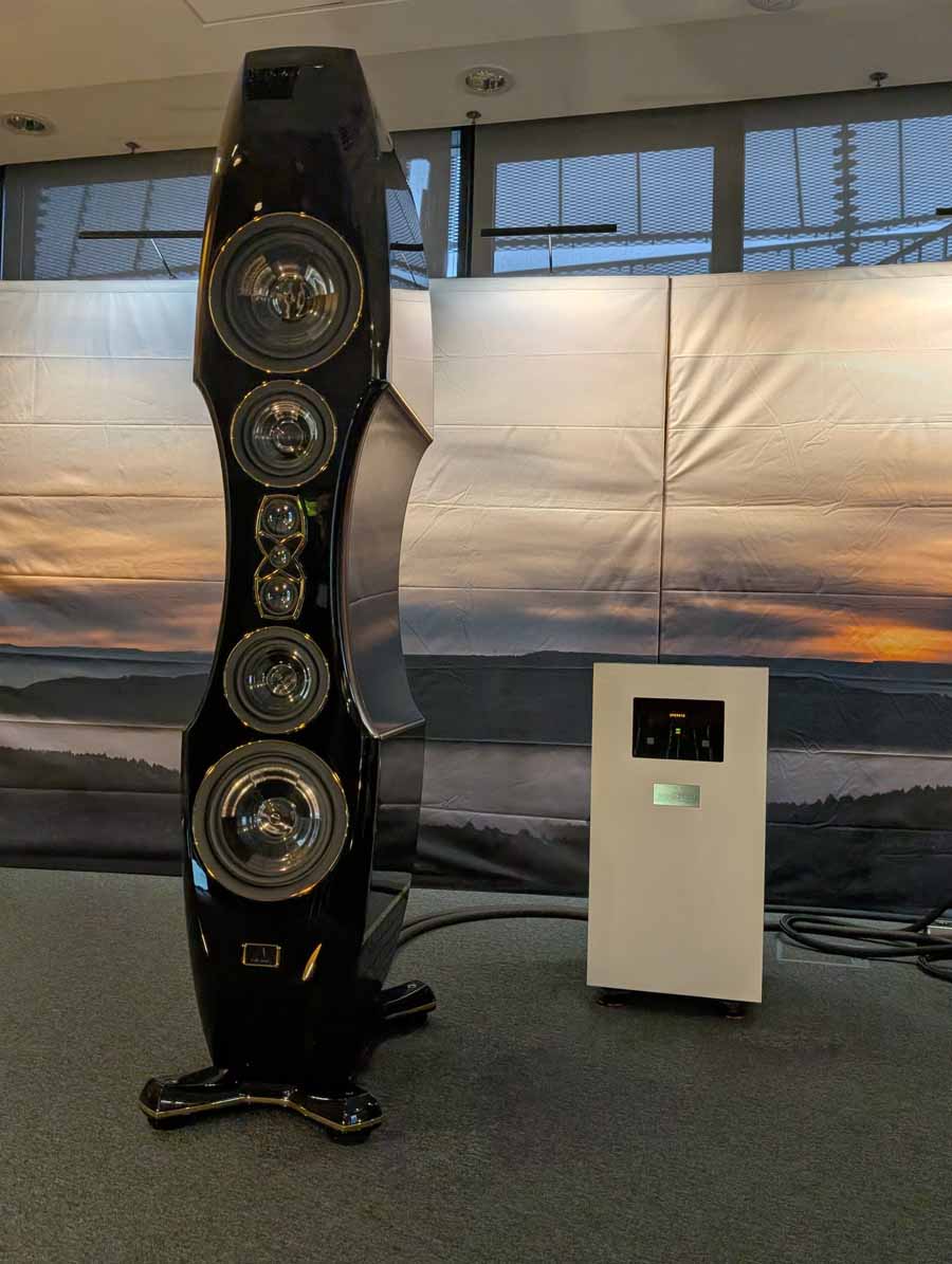 Lorenzo Audio Labs presented the LM1 Mk2 flagship loudspeaker at around 200K euros. This four way design uses a 16 inch woofer, an 11 inch midrange with Alnico magnets, a beryllium compression driver into a horn, and a 25 mm super tweeter. Sensitivity is 96 dB with 8 ohm impedance. These have to be one of the most exquisitely finished speakers on the market today.