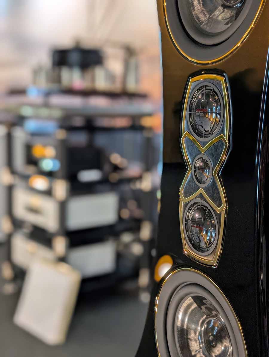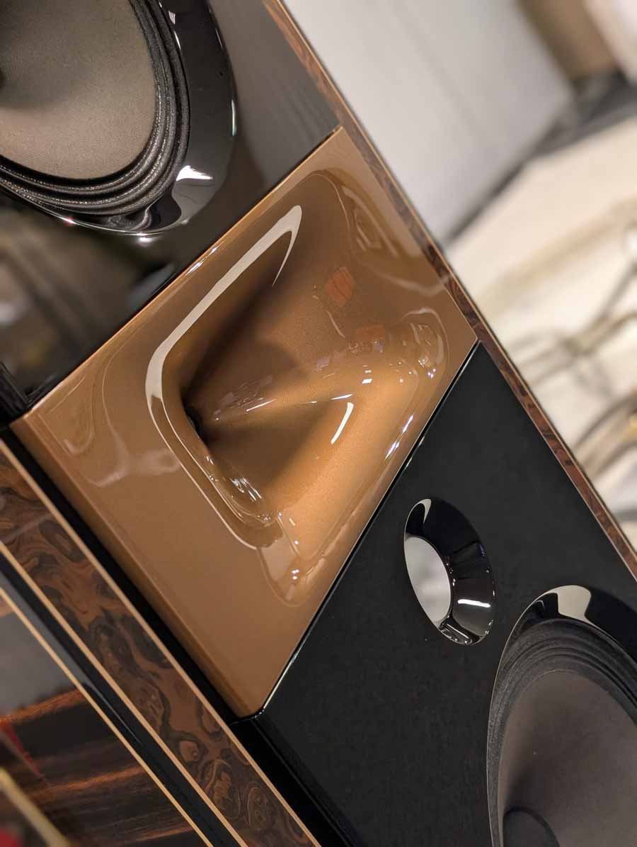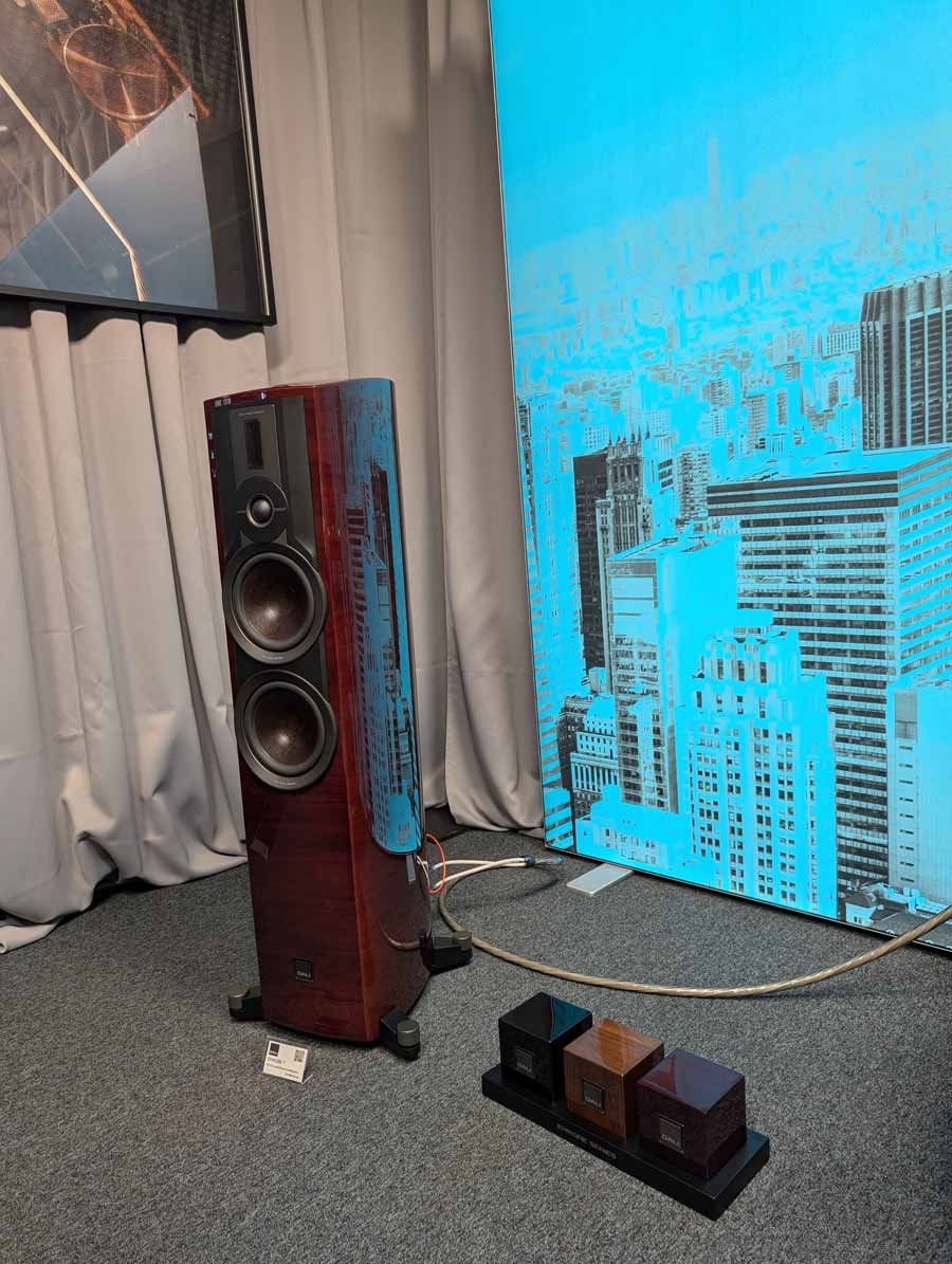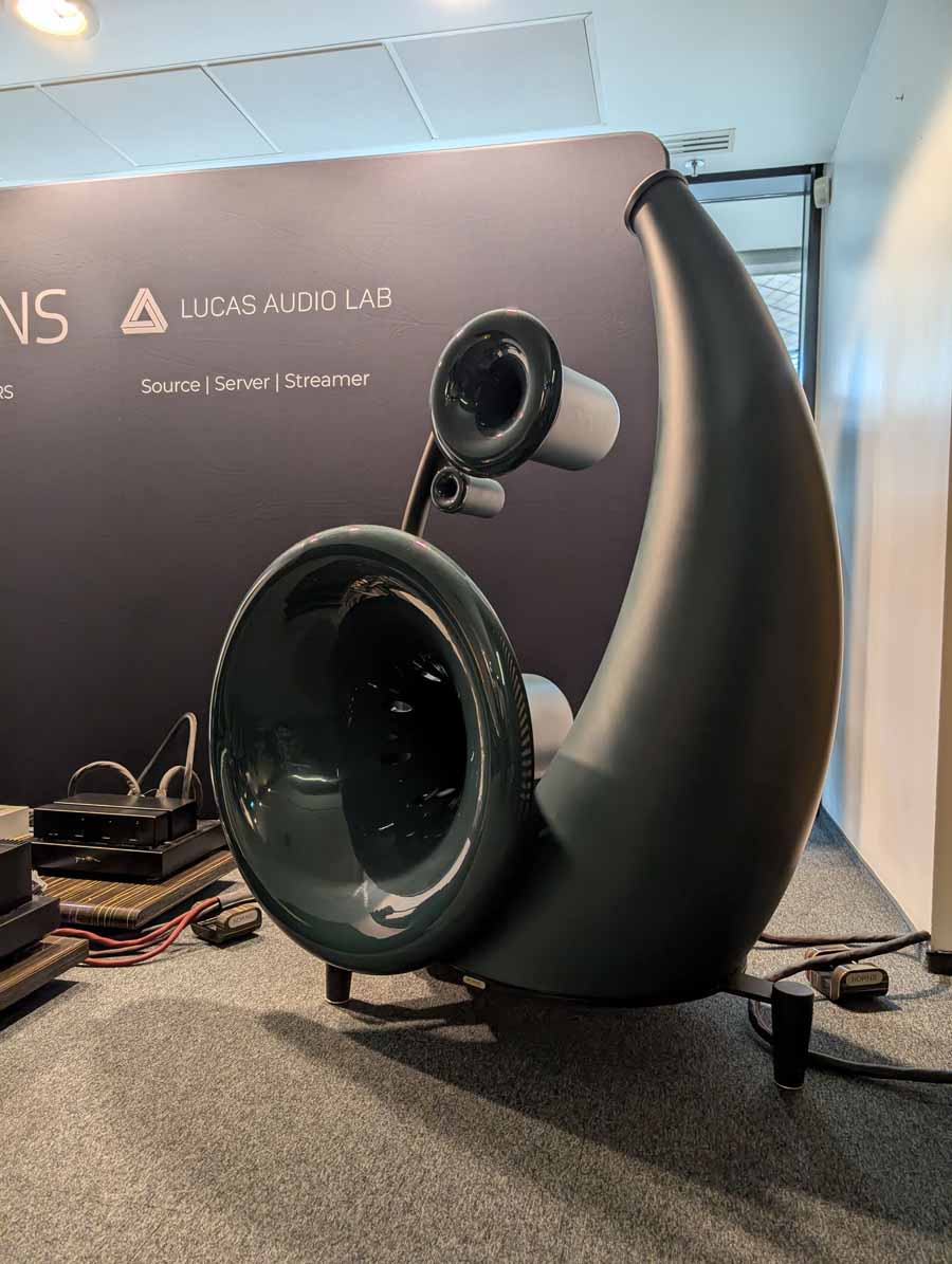 Lorenzo Audio Labs presented the LM1 Mk2 flagship loudspeaker at around 200K euros. This four way design uses a 16 inch woofer, an 11 inch midrange with Alnico magnets, a beryllium compression driver into a horn, and a 25 mm super tweeter. Sensitivity is 96 dB with 8 ohm impedance. These have to be one of the most exquisitely finished speakers on the market today.