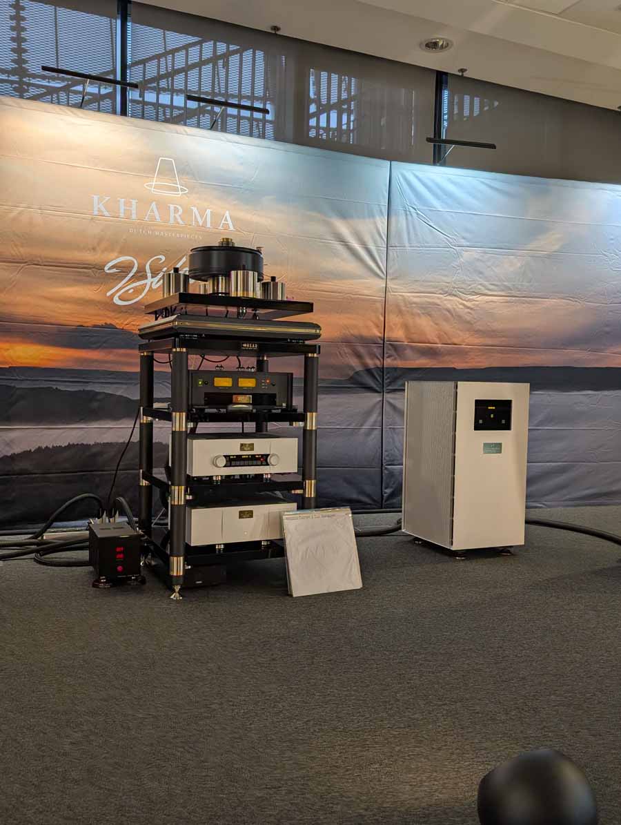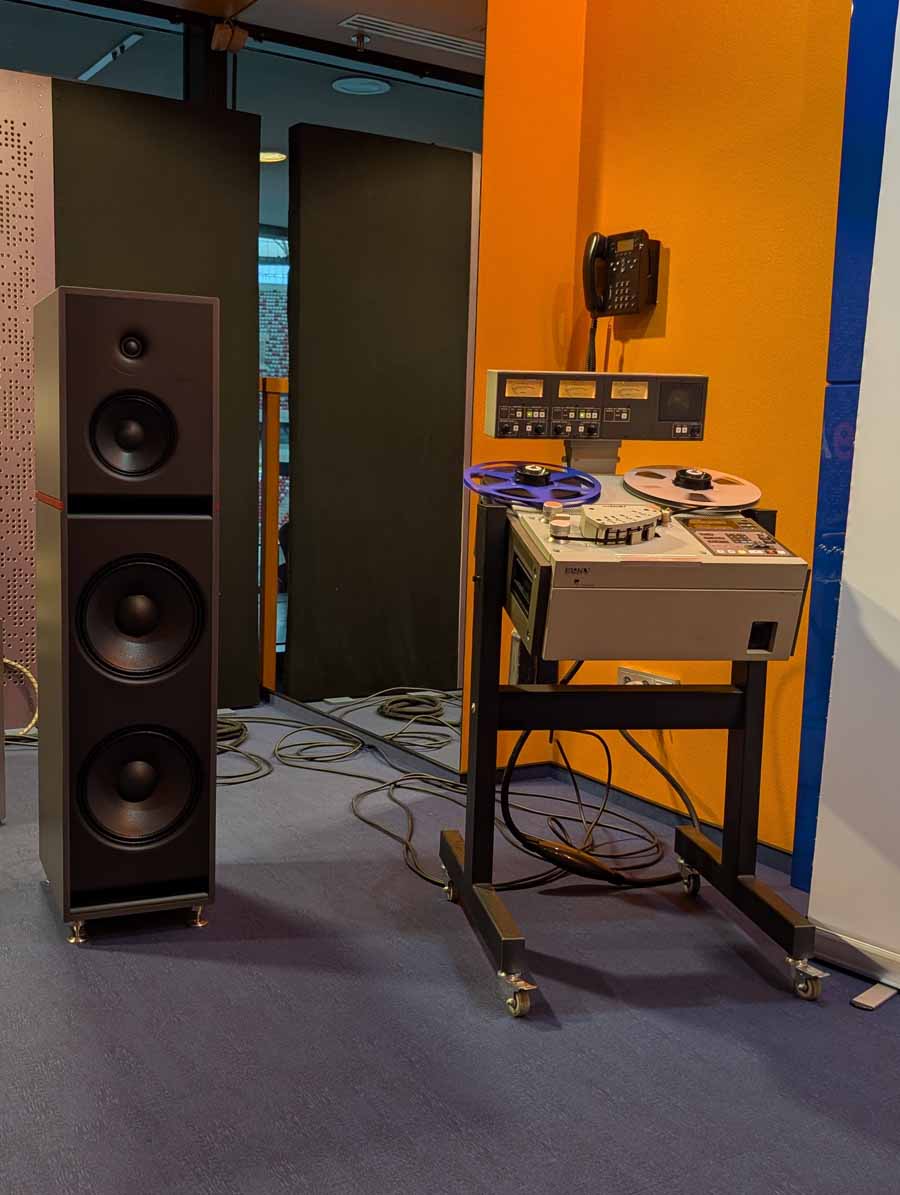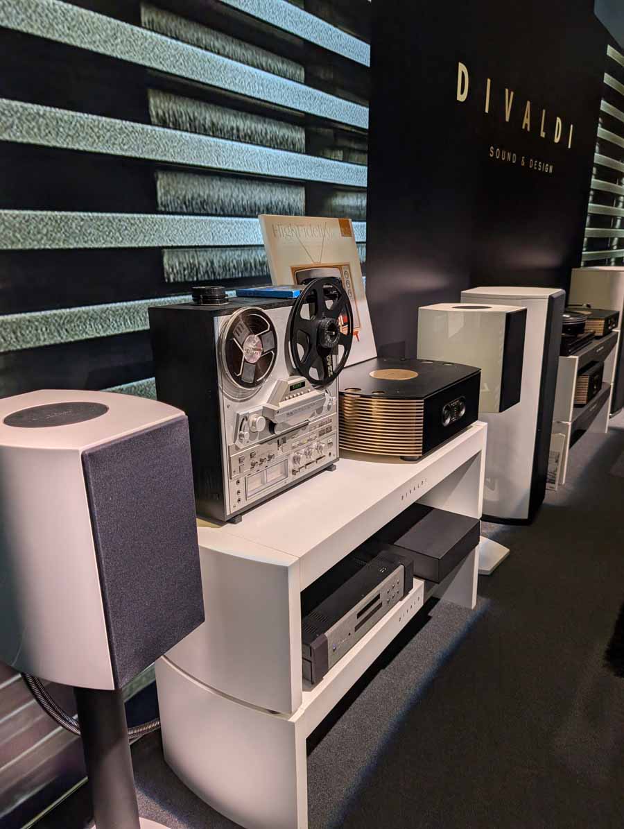 Studio 999 had set up an old (but fully restored) Sony reel-to-reel player fronting this system made up of humungous Audio Research amplifiers being ably controlled by a Karan preamplifier. Speakers were the Stenheim Alumine loudspeakers and they made for a really dynamic and exciting listening experience.