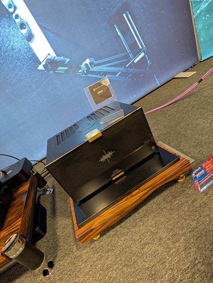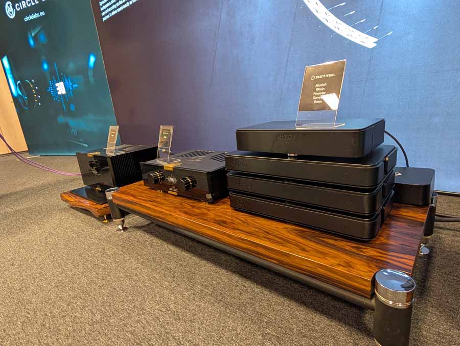 Circle Labs introduced two new amplifiers at the show. The M500 is a hybrid stereo power amplifier that can also run as a monobloc with a fully balanced topology. Power ratings are 600 watts into 8 ohms and 1,200 watts into 4 ohms as a monobloc, or 180 watts into 8 ohms and 340 watts into 4 ohms in stereo. A three step sensitivity setting aids matching. The AS100 is a solid state integrated amplifier rated at 75 watts into 8 ohms and 140 watts into 4 ohms. It uses a resistor ladder volume control with 0.1 percent tolerance and relay switching. It includes remote control and targets compact high performance systems.