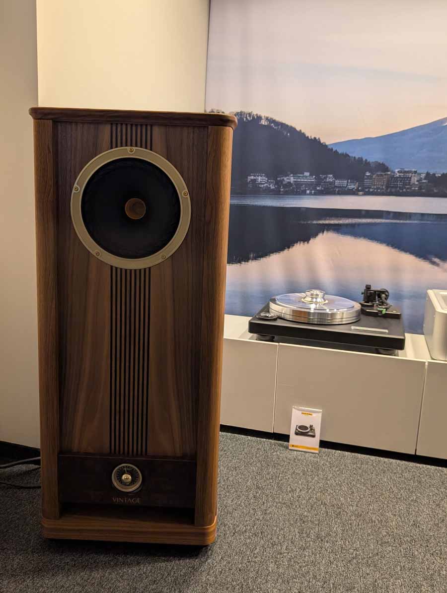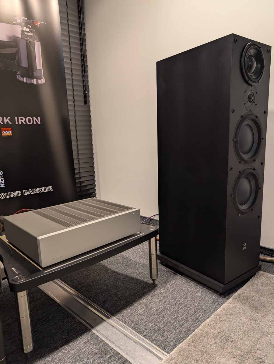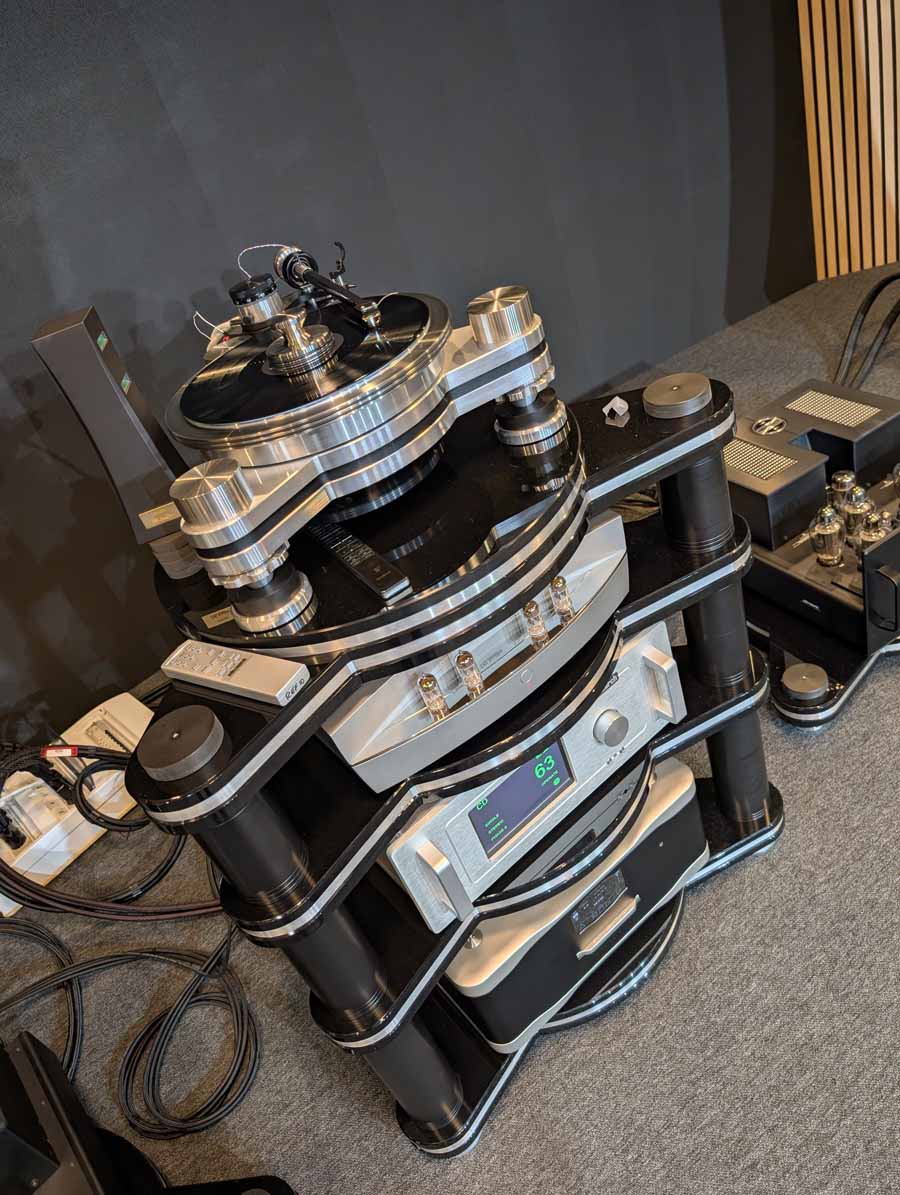 A pair of Point Source v10 floorstanders fronted this system with BAT stereo amplifier providing the juice. A pair of large Synthesis monos were on the floor, but we didn’t get to hear these. The V10 Master Edition were launched earlier this month and were designed by Andrew Jones. The MoFi SourcePoint V10 Master Edition builds upon the core design of the two-way SourcePoint 10, developing it into a full three-way floorstanding loudspeaker. Jones has added twin 10-inch woofers and dual rear-firing 10-inch passive radiators to create a more extended low-frequency performance while retaining the clarity and coherence associated with the original model. As its name suggests, the “V10” configuration refers to the use of five 10-inch elements. This design allows the custom 10-inch concentric driver, combining midrange and high frequencies, to operate within an optimised bandwidth, while the additional woofers handle bass duties. The result is intended to provide detailed and balanced performance across a wide frequency range, quoted as 27 Hz to 30 kHz.