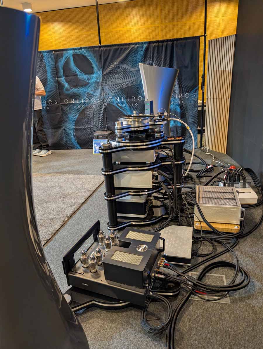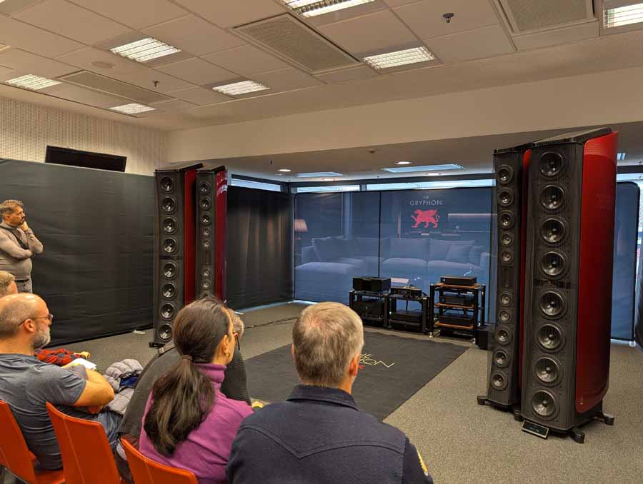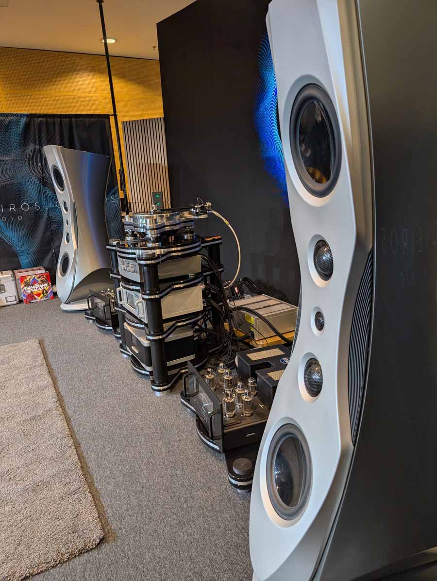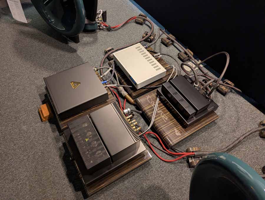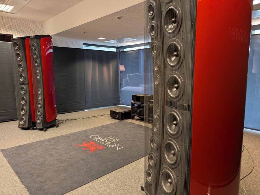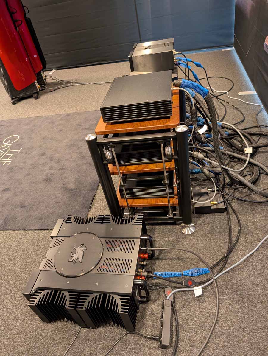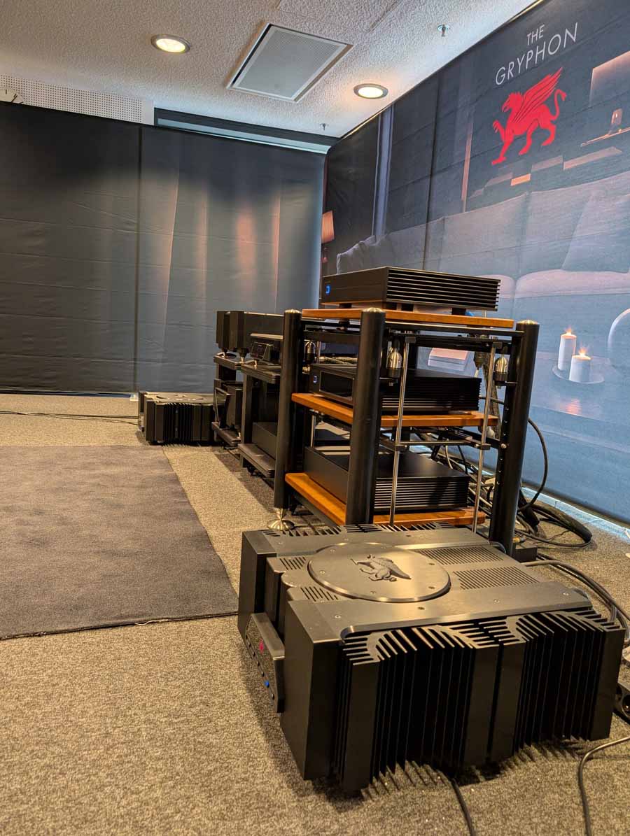 This was a case of “bind-and-drive” to get into this room to see and hear a totally insane system. The system was fronted by the flagship Kodo loudspeakers with the new Antileon Revelation monoblocks. The Antileon series, first introduced in 1995, had reached its fourth generation in mono and stereo versions. The system included the Commander preamplifier and the Ethos CD player. Aurender supplied the N50 music server with the MC10 master clock. Racks were Gryphon StandART, with cabling and accessories from Gryphon, Stealth Audio, Shunyata Research, and Synergistic Research.